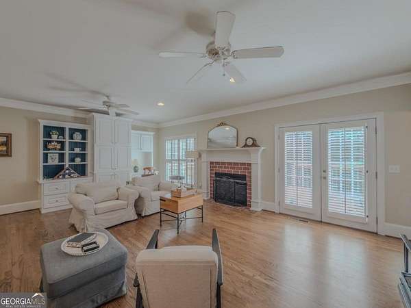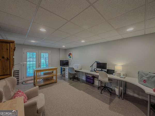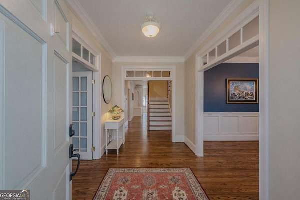 Tucked away on a private homesite, this classic Southern-style home welcomes you with a wide rocking-chair front porch, dormer windows, and classic warm welcoming exterior. Inside, you'll find bright, generous spaces designed for real life-formal dining with wainscoting, a dedicated office with French doors, and warm hardwood floors that carry the home's charm throughout..The primary suite is on the main level, creating an easy everyday setup, while the second level offers two additional bedrooms and a full bath-ideal for guests or flexible work-from-home space. At the center of the home, the kitchen features suede-finish granite countertops, a large center island, stainless appliances, and clean, updated touches that make it perfect for daily living and entertaining. Natural light pours into the breakfast area and main living spaces, keeping everything bright and comfortable. The finished terrace level expands your options with a large recreation area and bar space-perfect for movie nights, game days, hobbies, or a flexible guest setup-plus additional storage to keep life organized. Major updates provide peace of mind, including a roof replacement (2021, transferable warranty), crawlspace encapsulation (2025), and upstairs HVAC replacement (2021), along with exterior improvements like LeafGuard gutters and deck work-so you can focus on enjoying the home, not tackling a long to-do list. If you want privacy, room to spread out, and a home that's been well cared for, this one is worth seeing in person.