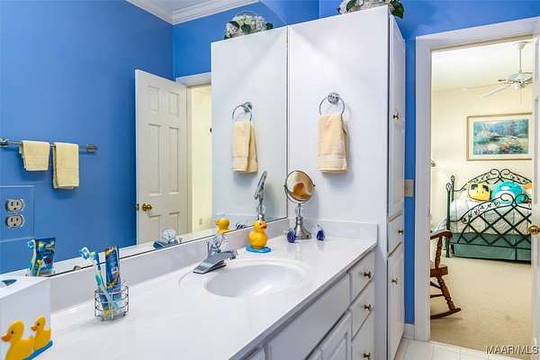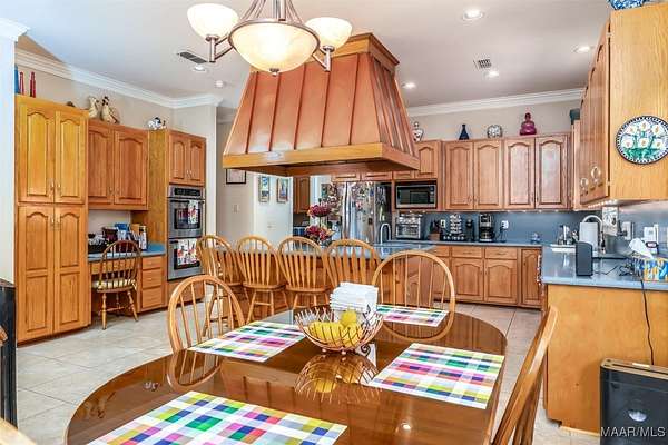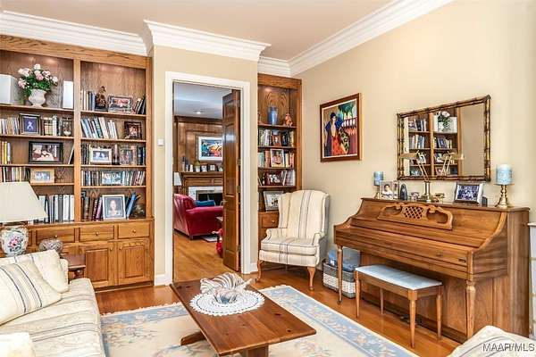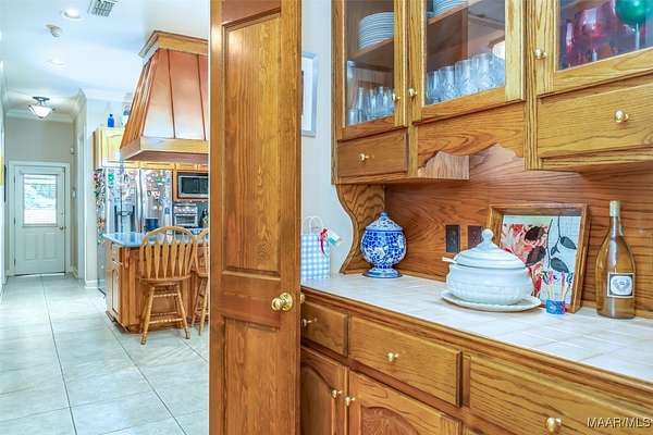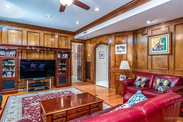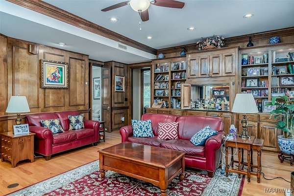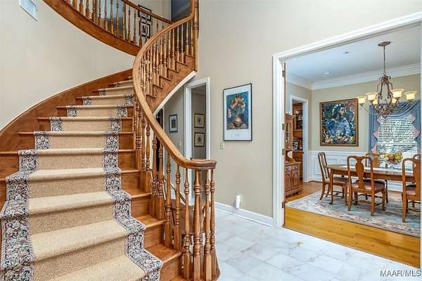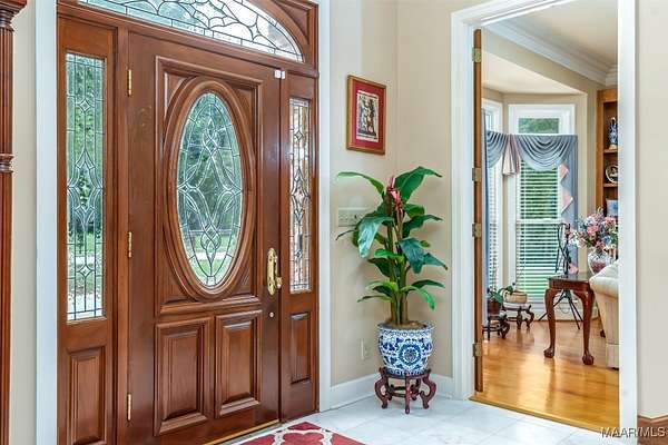 Elegant 4 Bedroom, 3 Full Bath, 1 Half Bath Home, this spacious and thoughtfully designed home offers over 5,600 square feet of living space, blending timeless details with modern conveniences. Inside, you'll be welcomed by a grand foyer with marble floors & a beautiful staircase leading to the second level. The formal dining room features rich wood flooring, while the expansive kitchen is a chef's dream-complete with a butler's pantry, custom cabinetry, corian countertops, built-in desk area, & a large work island with overhead vent (plumbed for an additional sink). A breakfast room, double ovens, electric cooktop, wine closet, stainless appliances, & an oversized pantry with pull-out drawers provide both function & style. The family room is warm and inviting with wood floors, wood paneled walls, built-ins, a marble fireplace, & a wet bar with connections for a refrigerator. Additional main-level highlights include a mudroom entry from the side driveway with extra pantry storage, a laundry room with patio access, a two-car garage with shelving and storage room, and a half bath conveniently located off the foyer. The luxurious primary suite features wood floors, a sitting area with built-ins & refrigerator connection, dual closets, & direct access to the sunroom. The spa-like bath includes granite countertops, double vanities, an oversized shower, jetted tub, & linen closet. The sunroom offers year-round enjoyment with heating & cooling, outdoor carpet, and access to the large, covered patio with tiled flooring & an outdoor counter with natural gas connection. Upstairs, 4 spacious bedrooms, one with a full bath, and another full bath in the hall. The 4th bedroom has built-in cabinets and drawers that securely lock. There is abundant storage throughout the upstairs, a cedar closet and attic storage. Other features include a tankless hot water heater, 3 heating and cooling zones, & a backyard filled with mature trees-perfect for entertaining or relaxing outdoors.