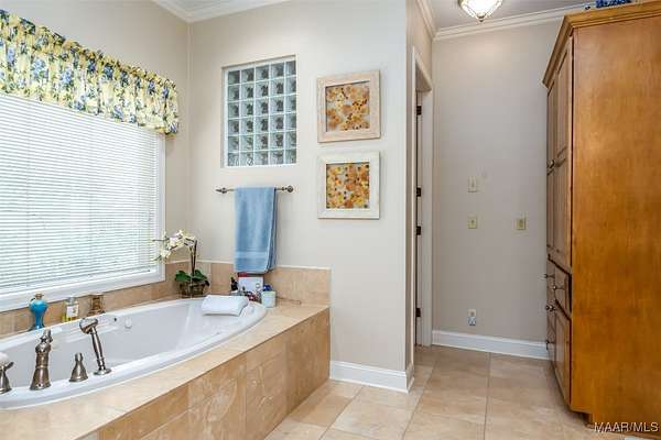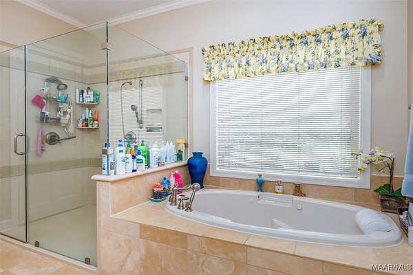 - Double Vanity, Garden Tub Roman Tub, High Ceilings, Jetted Tub, Kitchen Island, Separate Shower, Walk In Closets, Wet Bar, Window Treatments