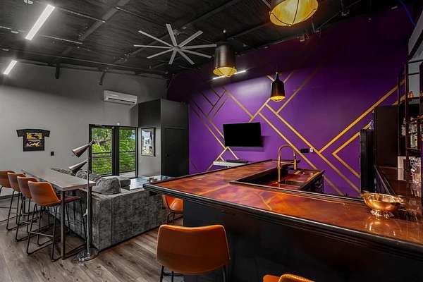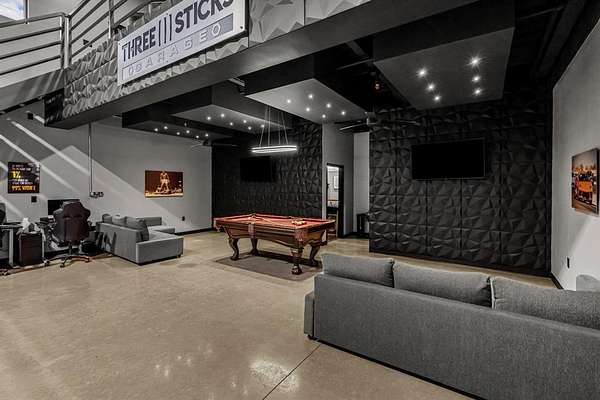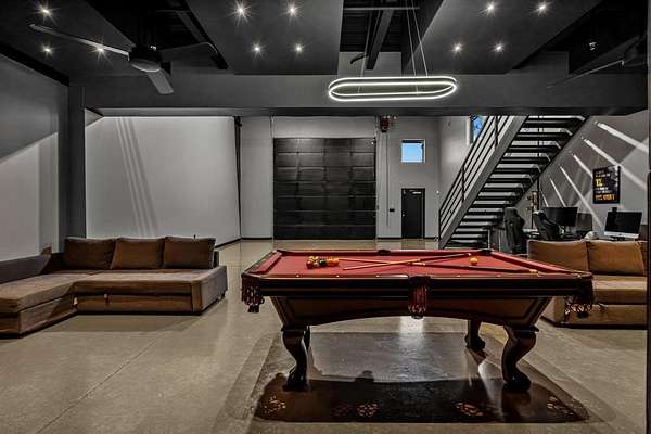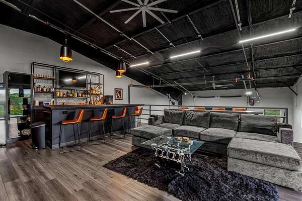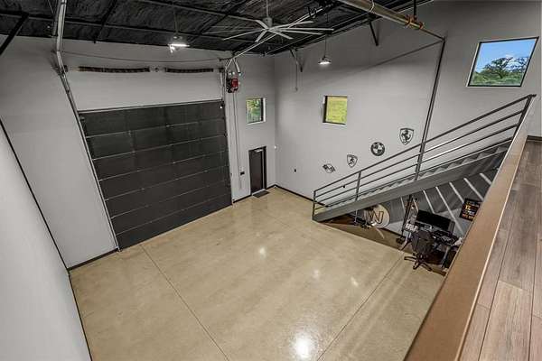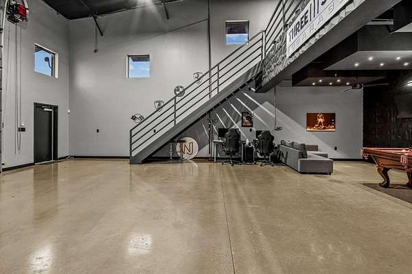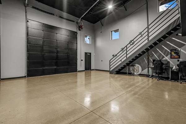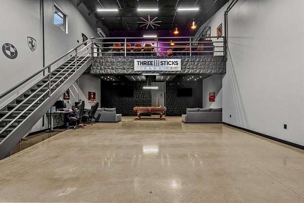 A premium garage suite located in an exclusive community designed for enthusiasts. Motorplace USA offers 24-7 controlled access, security cameras, perimeter fencing, exterior lights, a private clubhouse for owners, 50' wide drive aisles, & a trash enclosure. Suite 115 is the ideal space for storing & enjoying your cars, trucks, motorcycles, boats, jet skis, RVs, or for use as an office space. The main floor features a living area, full bathroom, & extra storage closet, while the mezzanine includes a spacious living area, private balcony, & full bar with sink, ice machine, mini fridge, & dishwasher. Additional features include a mini split with heat pump, 20' wall height with a 27' peak, oversized 14'x14' door with opener, pedestrian door, 200 Amp, 240 Volt electrical single phase, 30 Amp RV plug, insulated overhead doors, walls, & roof & a fire sprinkler system, providing an unparalleled combination of security, convenience, and luxury for all your high-performance needs.