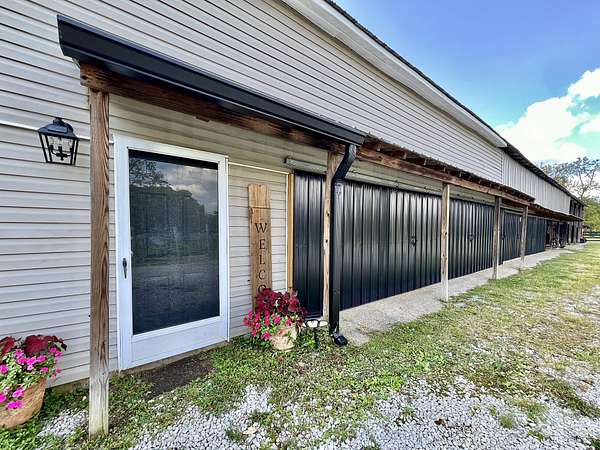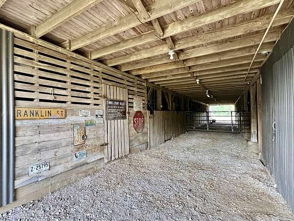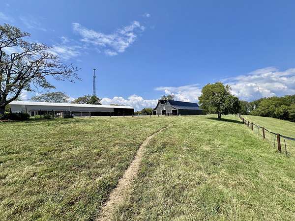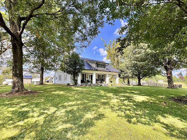 The land features 50% rolling pasture 50% hardwoods, centaur fencing, a spring house, and 4 ponds. 2 stocked, 2 springfed. Farm infrastructure includes a 132' x 78' barn with six stalls, two oversized foaling stalls, feed and tack rooms, spring-fed water lines and a massive loft with tongue-and-groove flooring. A second barn/shop includes a two-bedroom, one-and-a-half bath apartment ideal for guests, farm hands, or multi-generational living. At 170' x 40' it offers 13 bays, a full maintenance pit + fuel storage, while additional outbuildings include wood shed w/ Hardy heater that remains, milk barn, chicken coop & storage. Utilities include Tarpley Shop water to the house and apartment, spring water to barns, highspeed internet through Pulaski Electric, and an owned propane tank.