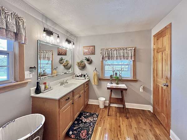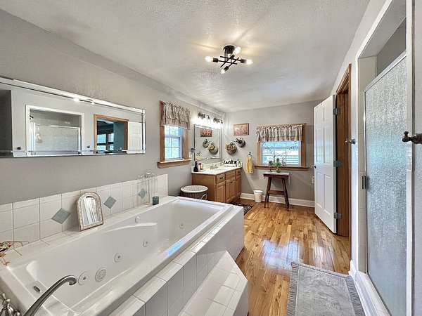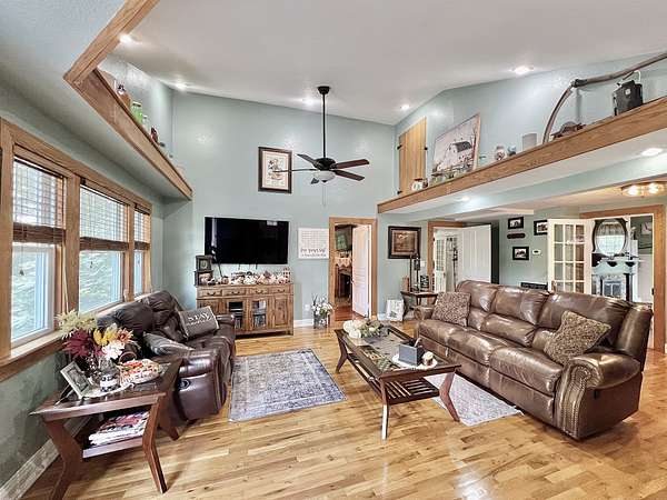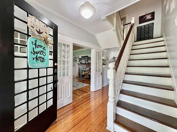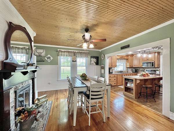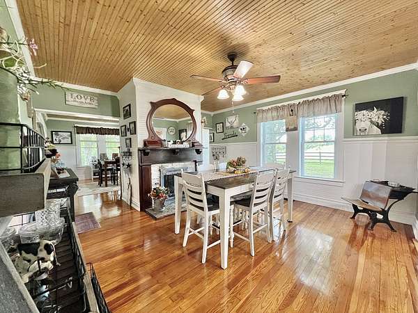 IMMACULATE! This 1920s farmhouse is the centerpiece of a rare 59.98-acre estate that nearly touches the Pulaski city limits. 5 bedrooms, 3 baths and over 3,300 sf with original hardwood floors, architectural doors, highlight windows and an expansive front porch framed by mature trees and a rock wall. Inside you'll find a living room with high ceilings, a beautifully equipped kitchen with granite counters, custom cabinetry, and stainless appliances, a dining room and bonus room with a double fireplace feature and a large utility/mudroom/storage. Upstairs includes multiple bedrooms, walk-in closets, a hobby room, office + extra storage, making this farmhouse feel endless.