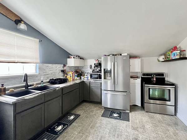 - Dishwasher, Disposal, Dryer, Gas Oven, Gas Range, Microwave, Refrigerator, Stainless Steel Appliance(s), Washer