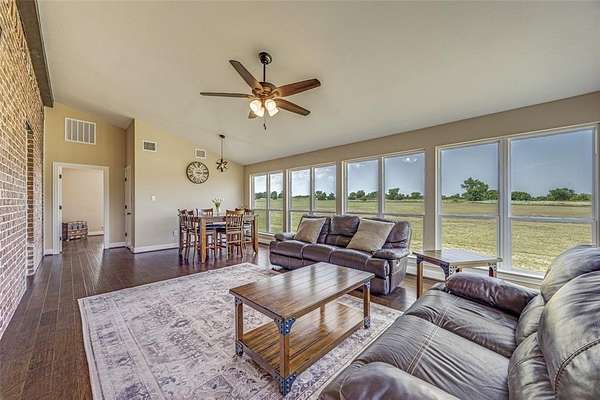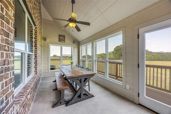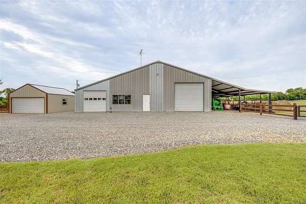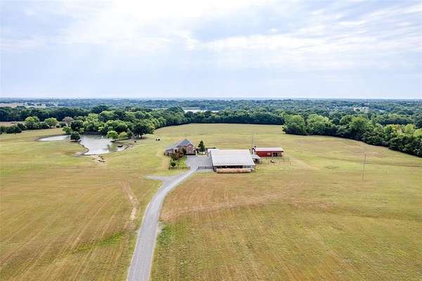 Welcome to this exceptional 33.9-acre, ag-exempt, fully fenced retreat in Bells, Texas, just a short drive to McKinney and Sherman for big city convenience. Highlights include a 540 sqft insulated guest apartment with full hookups and HVAC, a detached 2-car garage, and an impressive collection of outbuildings totaling over 7,000 sqft, including a workshop, storage shed, lean-to, and hay barn, all with concrete floors and full electrical. Designed as a forever home, this energy-efficient property features spray foam insulation, a propane tankless water heater, three-zone HVAC, and handicap accessibility throughout. Perfectly suited for generational living or establishing a private family compound, the custom-built 4-bedroom, 2.1-bathroom main home offers 3,107 sqft of thoughtfully designed space with soaring ceilings, engineered hardwood floors, and sweeping views of rolling pastures from every room. The gourmet kitchen boasts stainless steel appliances, double ovens, a breakfast bar, and a walk-in pantry, while the spacious family room features a stone fireplace and vaulted ceilings. The first-floor primary suite is a private sanctuary with a spa-like bath, enormous closet, and tranquil views. A second downstairs bedroom is perfect for guests, and upstairs you'll find a large game room and two generously sized bedrooms. A sunroom and second living area with a wall of windows overlook the aerated, catfish-stocked pond. Outside, enjoy a saltwater pool with chlorine generator, a fenced yard with pet access, vegetable garden with auto sprinklers, fruit and oak trees, and a secure automatic gate. Experience peaceful country living without compromise. *A 22.45 acre second parcel of land is available for sale MLS#21083233*