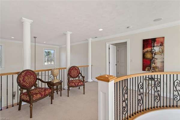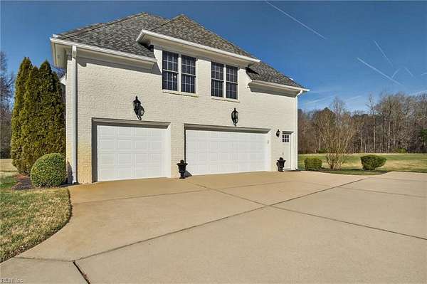 Stately all-white brick estate on 3 private acres offering luxury multigenerational, space, and versatility. Built in 2007, the 5,145 sq ft main home features 6 bedrooms, 5.5 baths, an elevator, and two primary suites one on each level. A dramatic 18-ft entry foyer showcases a curved staircase and chandelier on a lift. The home offers 10-ft first-floor ceilings, 9-ft second-floor ceilings, an 11-ft tray ceiling in the first-floor primary suite, vaulted family room, and formal living and dining rooms. The eat-in kitchen includes custom cabinetry, oversized pantry cabinets, granite countertops, tile backsplash, and appliances. Outdoor living includes two rear patios, an inground pool with seasonal cover, and a brick pool house with full bath and roll-up door. Additional features include attached 3-car garage, detached 3-car brick garage with living suite and full bath above, walk-in attic, backup generator, underground propane tank, well and septic, and fenced playground area.