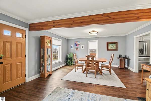 - Beamed Ceilings, Formal Dining Room, Foyer Entrance, Granite Kitchen Tops, Mud Room, Water Softener, Workshop