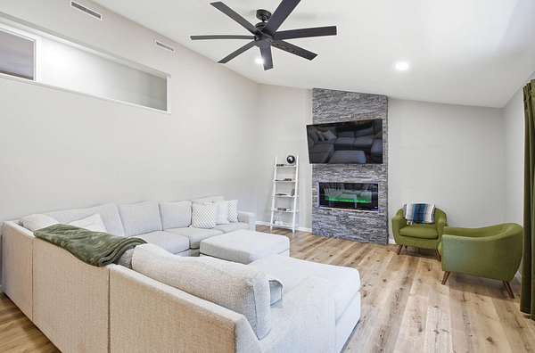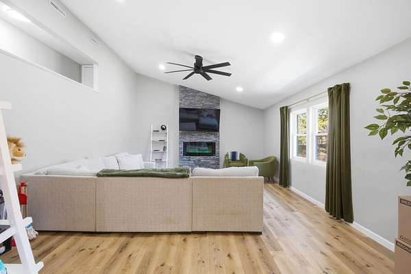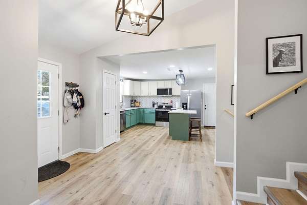 Renovated from top to bottom just 3 years ago, this stunning 3 bedroom, 2.5 bathroom multi level home offers over 2,500 square feet of beautifully updated living space on 1.6 acres! The main level features a huge kitchen with quartz countertops, stainless steel appliances, an island, pantry, and eat-in dining space! The massive living room is sure to impress with tall ceilings and a beautiful electric fireplace that creates a warm and inviting focal point. Upstairs, you'll find all 3 bedrooms, including the primary suite complete with a private bath which offers it own tiled walk-in shower. An additional full bathroom and walk-in closet provide even more convenience! The lower level walk-out offers a large family room, half bathroom, and laundry area, giving you a flexible living space.