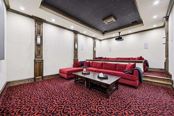 A dedicated media room creates the perfect setting for movie nights, while the 4-car attached garage provides convenience and ample storage.