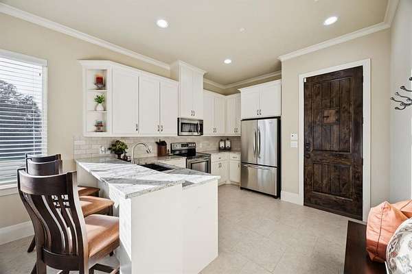 The main residence features 3 spacious bedrooms, 3 full bathrooms, and 2 half baths, each thoughtfully designed with elegant finishes and timeless details. The property also includes a guest house complete with a full living room, kitchen, bedroom, and bathroom, offering an ideal retreat for guests, family, or a private office suite. The chef's kitchen serves as the heart of the home, boasting premium appliances, a large island perfect for entertaining, and custom cabinetry that flows seamlessly into the open living and dining areas.