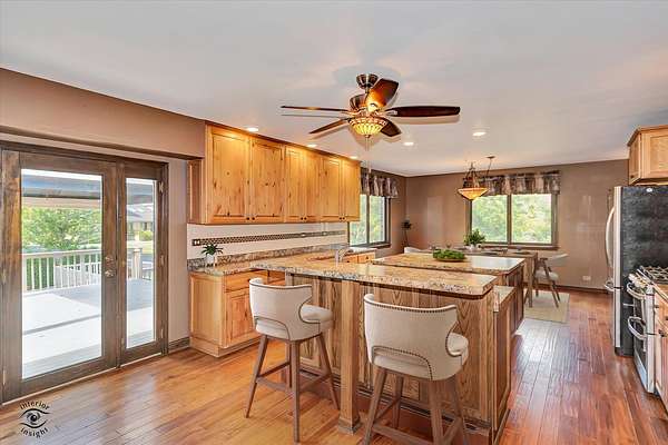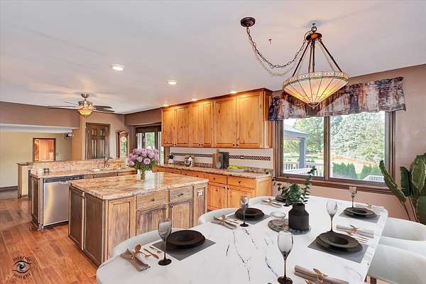 Welcome to Orland Park! This remarkable home sits on a beautiful 2.5 ACRE PARCEL across the street from forest preserve land. Quiet and serene, it truly feels like you're on vacation! The main home features 4 bedrooms, 3 full and 2 half baths. Beautiful 6 panel doors and stunning wood features throughout. Main floor laundry & 2 car attached heated garage. Beautiful eat-in kitchen updated roughly 12 years ago with alder cabinetry, 2 pantries, stainless steel appliances, a breakfast bar, large island and space for table seating. Off the kitchen is a massive 3 tier deck with pergola. The primary suite? A true oasis with 14' vaulted ceilings, his and hers walk-in closets, a jaw dropping floor to ceiling gas fireplace and a remodeled primary bath complete with dual vanity, standup shower and jetted tub. But that's not all. This property features a true, RELATED LIVING APARTMENT addition off the main house. 1 bed, 1 full bath, full kitchen, living room, dining area, private patio, laundry and attached garage. The back of the property features 7 fruit trees, a 30 x 30 former 2 story barn turned heated garage with 220 power + loft and a shed. House, barn & shed roofs are new in 2024. Main house exterior and deck painted in July 2025. Entire house electric was updated roughly 15 years ago when central air was added to the home. DO NOT LET THIS ONE PASS BY!