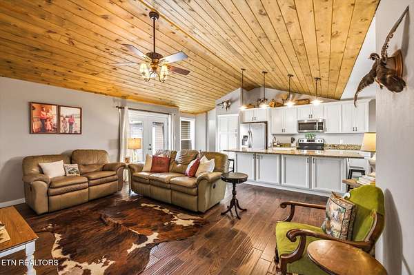 Set against a backdrop of year-round mountain views, this stunning 19.01-acre unrestricted property offers the perfect blend of privacy, usability, and East Tennessee beauty. Featuring rolling, cleared pastures and a peaceful pond, and a 30x40 storage shed, the land is ideal for a homestead, mini-farm, or simply enjoying wide-open space with breathtaking scenery in every direction. The home offers 1,548 square feet of thoughtfully designed living space with hardwood flooring throughout and a spacious open floor plan that creates a warm, inviting atmosphere. The large primary suite provides a comfortable retreat, while the main living areas flow seamlessly for both everyday living and entertaining. Step outside to enjoy the wraparound porch, where you can take in the mountain views year-round, or host gatherings on the expansive patio designed for entertaining. A two-car garage adds convenience, while the unrestricted acreage offers endless possibilities--bring your animals, build additional structures, or create your dream lifestyle without limitations. This property delivers the rare combination of usable land, scenic views, and a well-appointed home--all in a peaceful Loudon County setting while still within a short drive to Downtown Sweetwater, shopping, and I-75. Buyer to verify all information.