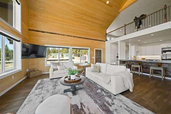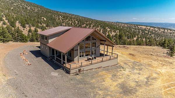 MOTIVATED SELLER! SHOWINGS STRONGLY ENCOURAGED Privately situated on Grizzly Mt, just minutes from Downtown Prineville, this 65 ACRE retreat offers a stunning, peaceful setting, modern rustic charm, & sweeping Cascade Mountain views. Built in 2019, the 4BR/3BA home offers an open kitchen w/dramatic wood slab island, stainless appl, solid surface countertops and walk-in pantry. Exquisite Great Rm filled with natural light, features a wall of windows framing the panoramic views, floor-to-ceiling stone fireplace, warm wood accents and soaring ceilings. 2 Main Level en suite bedrooms. Upstairs: Spacious Bonus/Game Rm and 2 additional bedrooms. 1,141 SF 3+ car garage. Property boarders 785 acres of BLM land creating more privacy than you could ever imagine. Three 2,500-gallon cisterns, 500-gallon propane tank, 1,000-gallon septic, and ideal solar slope. RV hook-ups. Land Owner Preference (LOP) hunting tags available. STR eligible. An awe-inspiring property and a must se