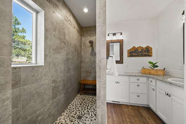 - Breakfast Bar, Ceiling Fan(s), Double Vanity, Granite Counters, Linen Closet, Open Floorplan, Pantry, Smart Thermostat, Tile Shower, Vaulted Ceiling(s), Wired For Data