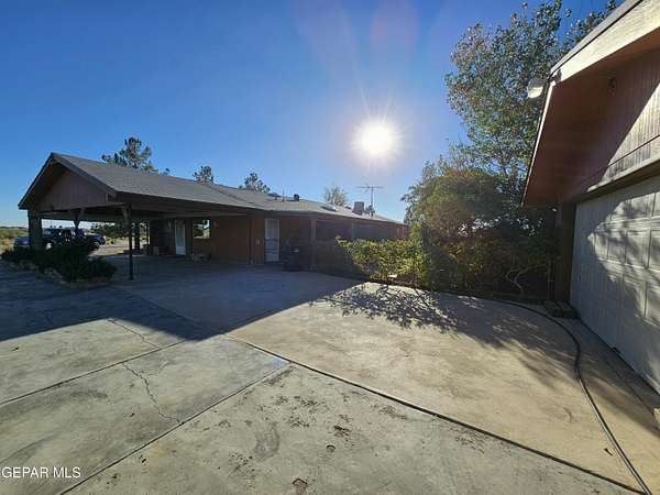 Prime investment opportunity on a 2-acre corner lot in Haciendas del Norte, one of the most desirable areas just outside the city, close to Loop 375 and Zaragoza/Montana intersection. Surrounded by high-value acreage homes, this property sits in a location where every lot is at least 2 acres-making land the true asset. The existing home is well maintained but outdated, offering strong potential for renovation or repositioning. The parcel is large enough to build a new main residence while converting the current home into an accessory dwelling-ideal for multigenerational living, rental income, or future resale upside. Horses, goats, and donkeys are allowed, adding flexibility for different uses. A detached 2-car garage and a large awning that fits up to four vehicles provide added utility. With rising land values in this sought-after pocket, this property is priced to sell-a rare chance to secure acreage with immediate usability and long-term potential.