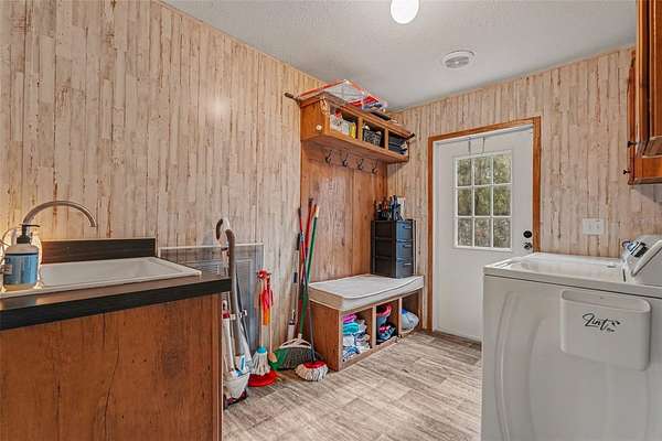 Practical features continue with a well-equipped interior laundry room offering a utility sink, cabinetry, and convenient rear access to the property.