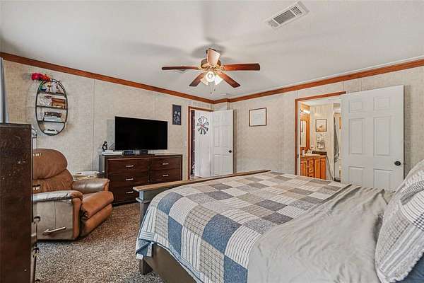 The split-bedroom floor plan provides privacy and flexibility for family, guests, or a home office. The spacious primary suite is a private retreat, complete with a large walk-in closet and a spa-like en-suite bath offering dual sinks, a garden tub, walk-in shower, and separate water closet.
