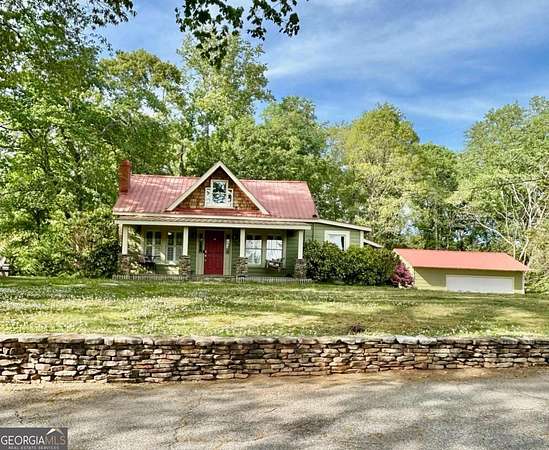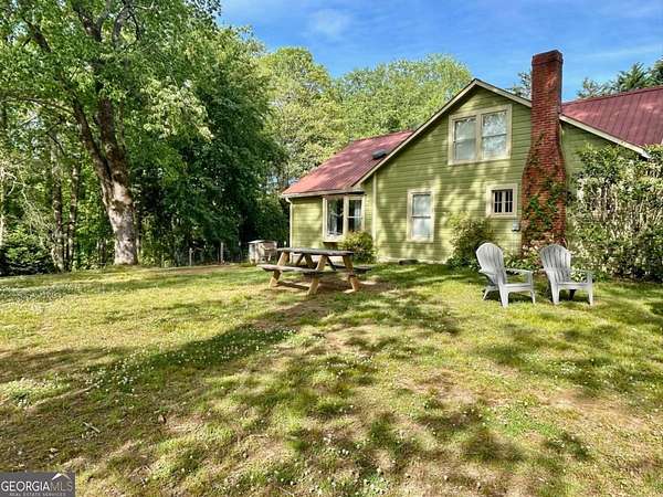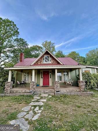 This Charming Country Cottage boasts 3-bedrooms, 2-baths and is full of character and set on 1.8 private acres with NO HOA. This unique property offers a detached workshop/garage, RV hookup, and plenty of space for boats, trailers, or multiple vehicles - no cookie-cutter restrictions here! The impressive long circular driveway on a corner lot is accented by a handsome stacked rock wall. Inside, you'll find a flexible floor plan including a dedicated office on the main level currently used as a workout room. Also on the main floor are two more large sized bedrooms and a full bath. Upstairs features a private bedroom, full bathroom, multiple closet areas, and additional sitting or office space - perfect for a private retreat, guest suite, or work-from-home setup. Recent updates include exterior paint on both the home and garage (Summer 2025), new AC unit (2022), and new carpet upstairs (2025), plantation shutters in dining and living room, Quartz countertops in laundry, kitchen and Leathered Granite in the primary bathroom. Enjoy peaceful living just outside the city limits with no city taxes, while still being extremely close to downtown Clarkesville. Conveniently located just 20 minutes to Helen and 30 minutes to Lake Burton. This property offers the perfect blend of Clarkesville charm, privacy, and flexibility.