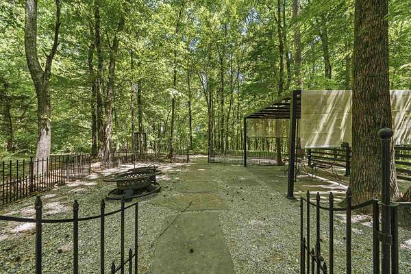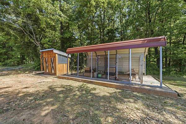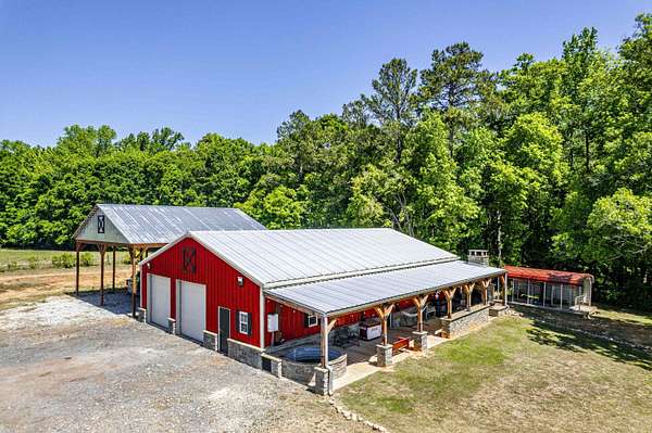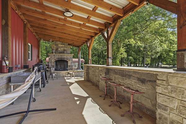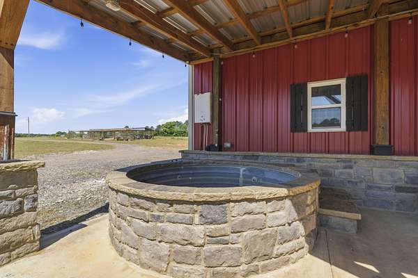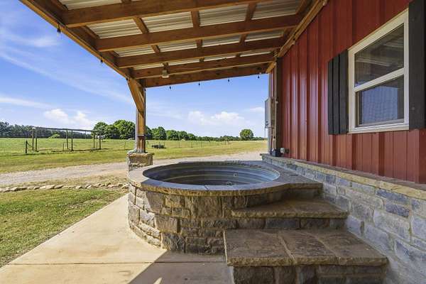 - Barn, Covered Deck, Fenced Partially, Firepit, Hot Tub, Outdoor Fireplace, Screened Porch, Shed