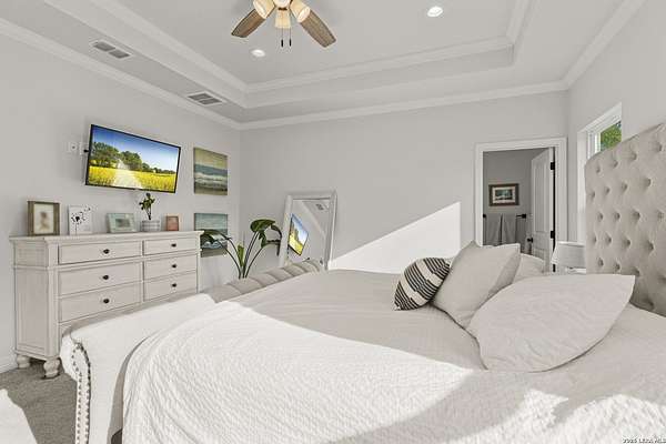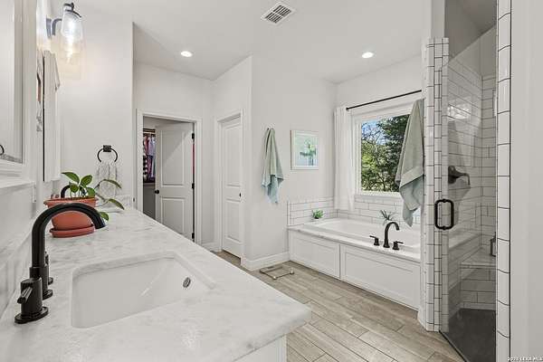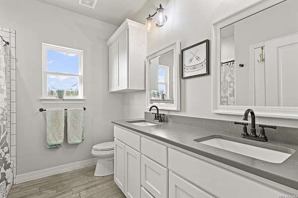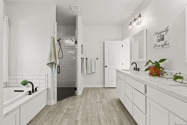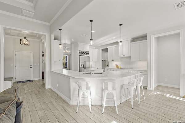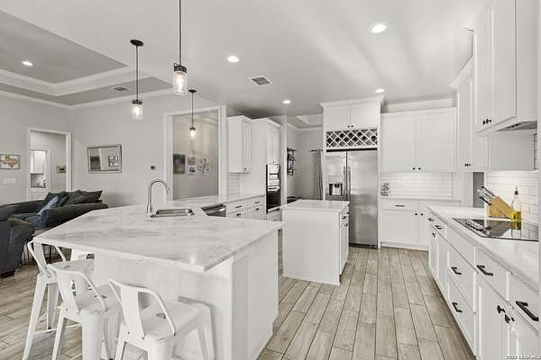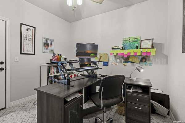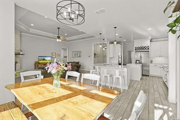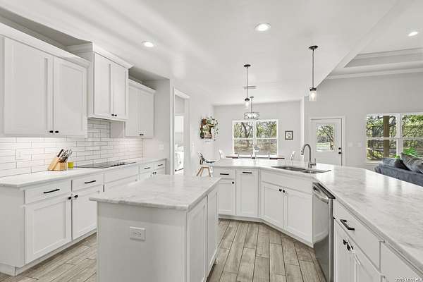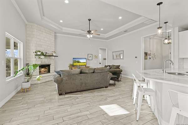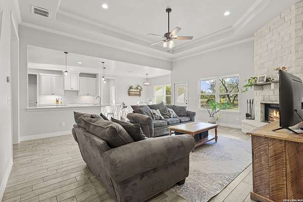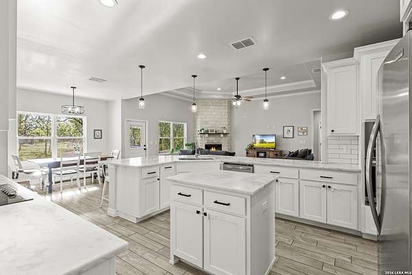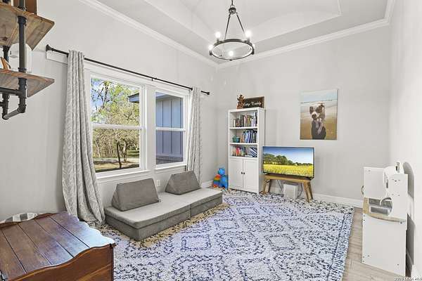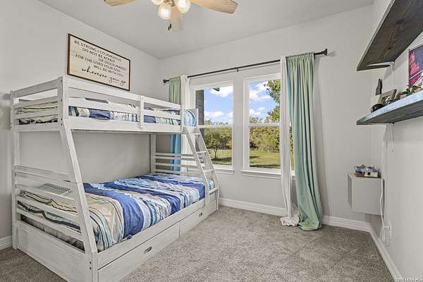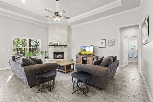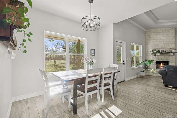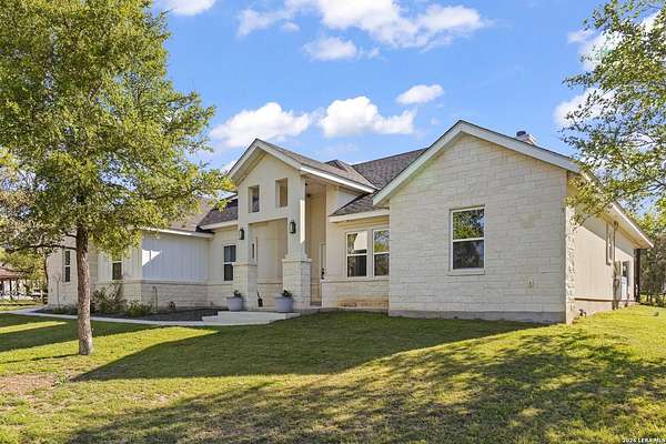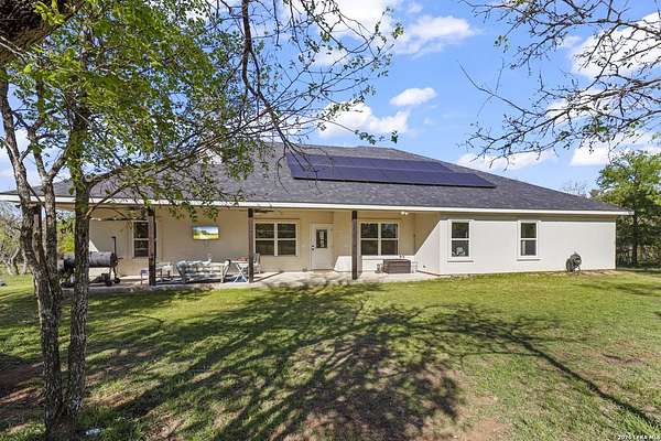 Welcome to your private retreat on 3.49 scenic acres in the highly sought-after La Vernia ISD. Built in 2020, this 4-bedroom, 2.5 bath home blends modern comfort with peaceful country living. Step into an open concept layout featuring durable wood like tile, soaring ceilings, and a cozy fireplace that anchors the main living space. The spacious kitchen is designed for both everyday living and entertaining, complete with an oversized serving area, ample storage, and room to host gatherings with ease. The primary suite offers a true retreat with a 12-ft tray ceiling, generous space, and a spa-like bathroom designed for relaxation. Secondary bedrooms feature plush carpet and tall ceilings, creating a bright and inviting feel throughout. Energy efficiency meets modern convenience with 31 ION solar panels, Enphase micro-inverters, and a 10kW battery backup system all easily monitored through the Enlighten app. Step outside and experience the lifestyle this property offers-private trails perfect for riding, mature trees, and a garden area. In the spring, bluebonnets and wildflowers transform the property into a truly picturesque setting. A standout feature is the fully finished, separate office space located just off the garage-ideal for working from home, running a business, or creating a private retreat away from the main living area. Additional highlights include a 2-car garage and unique serving pantry. Don't wait long this is your oppurtunity to have modern features combined with Texas country living.