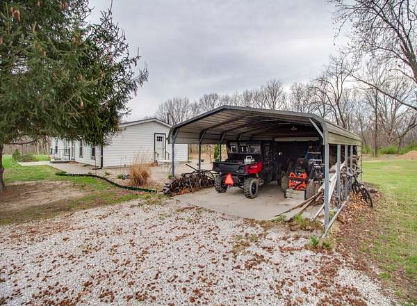 Sprawling 20-acre property offering privacy & modern conveniences. This 2 bedroom, 2 bath home features fiber board siding, central air, propane, septic, & public water. Dual concrete patios provide ideal outdoor space, while a detached 2-car carport w/ storage adds functionality. The main floor offers a cozy living room w/ wood flooring. The kitchen features breakfast bar & the adjacent dining area has a wood-burning stove. Main floor laundry includes a closet for the electric water heater & furnace, & has walkout access to a concrete patio. The home includes a spacious primary suite featuring wood flooring, a walk-in closet, & full bath w/ tub & separate shower. Another full bathroom is also located on the main floor. This well-equipped property offers a peaceful retreat w/ modern amenities & ample outdoor space.