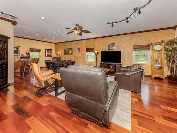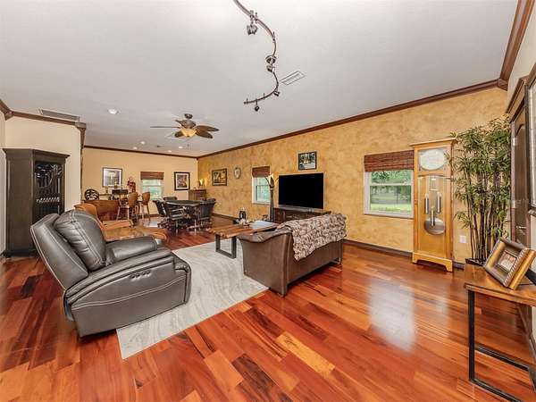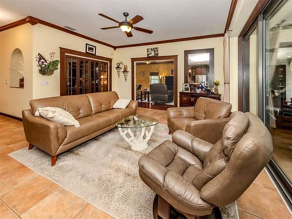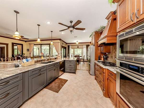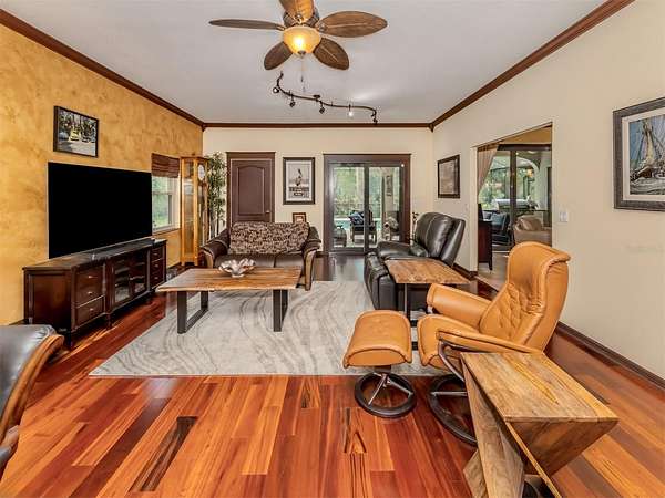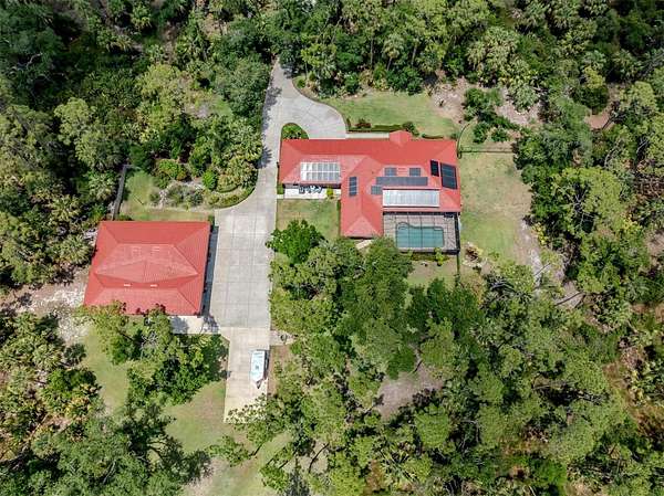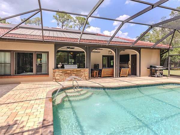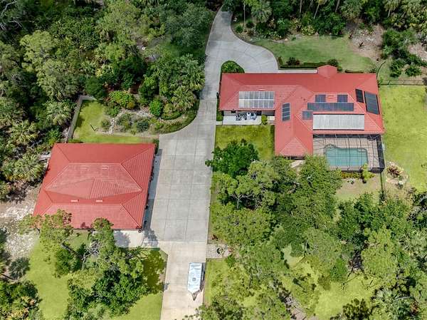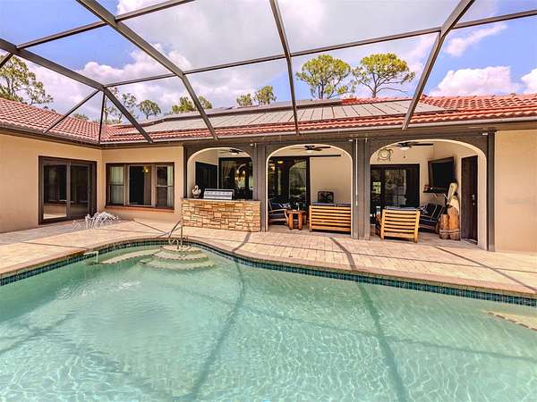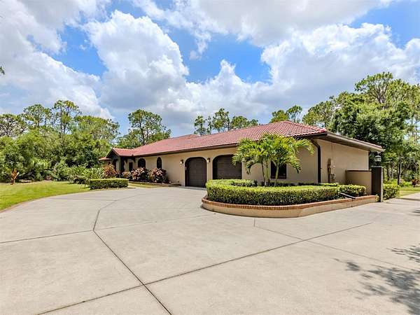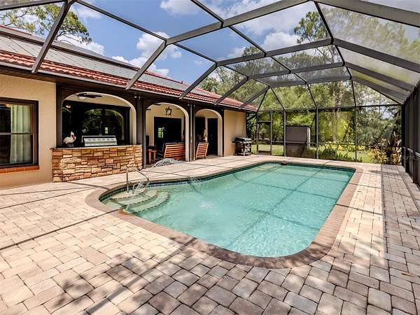 Under contract-accepting backup offers. BRING YOUR RV, BOATS, BIG TOYS, CLASSIC CARS and more! You have room for it all on this amazing 5+ acre property. THE ULTIMATE LIFESTYLE ESTATE in the heart of North Port, Florida! One of the most incredible properties in North Port, Florida is now waiting for you! Splendid privacy and park like 5.24 acres surrounds this wonderful home and amazing 50' x 60', 3 bay garage & shop with RV height doors, car lift and 400 AMP service. Weather you are an automobile enthusiast, contractor looking for a huge shop and garage with room to expand, RV owners, nature/garden lovers or just want extra space and privacy that is convenient to the heart of North Port, this is a one-of-a-kind property you will want to see for yourself! Let's start with the nearly 3,000 sq.ft. beautifully update home showcasing 3 bedrooms, gourmet kitchen, dinette and separate formal dining area. An enormous great room/family room is the heart of activities from tv lounge to game room and bar. A lovely sitting area is off the kitchen with a wonderful office/library with custom built-ins. The owner's retreat with on suite and walk-in closet offers french doors to the pool area. The attached 2 plus car garage is air conditioned as is the attached bonus room perfect for a home gym, teen game room, office and more. The property offers an array of incredible extras from a full 50 AMP RV hookup plus water station all built on a large 6" thick concrete pad. The entire property has water stations with hose hookups for gardening, citrus tree plantings and horticultural pursuits. The wonderful private yard offers irrigation throughout. New fencing on the side-yard is great for pets and children at play. The large and very private pool area has an outdoor kitchen, plus outdoor TV and relaxation area under roof. All of this area is enhanced by pull down storm shutters that compliment the home's nearly new hurricane impact windows and doors! Including sliders! A full house Kohler generator completes the peace of mind during inclement weather. Top it off with a freshly painted exterior for both the house, garage, plus yard walls! A great list of upgrades is available through your realtor upon request. Take time to see this gorgeous property today.