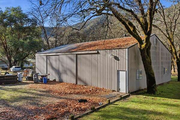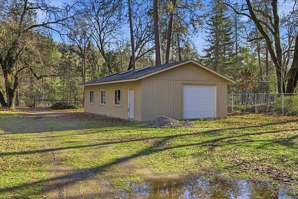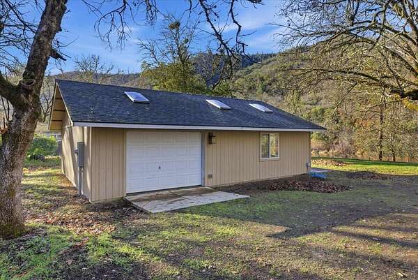 An extremely rare Rogue River waterfront offering gentle access to the water and beautiful river views throughout the property. This 2.74 acre parcel offers exceptional versatility and can be purchased on its own or together with the neighboring estate at 1407 Upper River Rd. The property includes a financeable double wide manufactured home, along with outstanding shop and studio space. Improvements include an approximately 800 square foot newly built detached garage/shop, an additional approximately 800 square foot detached garage with an art studio featuring windows overlooking the Rogue River, and a large approximately 1800 square foot metal shop ideal for storage, hobbies, or business use. A peaceful river setting, rare usability, and flexible purchase options make this a truly special opportunity along one of Southern Oregon's most desirable stretches of the Rogue River.