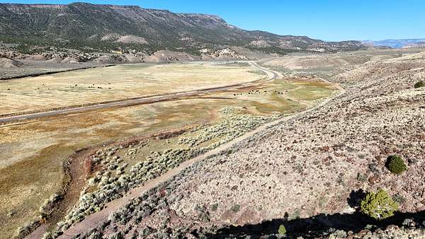 On the north side of the highway, the property rises dramatically over 400' above the river bottom to a peak elevation of 6770'. The northeast corner of the property has a gravel pit with paved road access, several springs feeding nearly 30 acres of premium grazing ground, corrals, power, and a well permit for a 2nd home. The north side of the highway is covered with rolling sage hills with a few cedar trees across the majority of the 300+ acres. This side of the property provides the gateway to a BLM grazing lease for another 50 AUMs. In several places, there are dramatic overlooks of the river bottom property, the surrounding mountains, and breathtaking views of Otter Creek and Antimony.