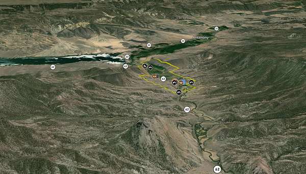 The northeast corner of the property also contains a gravel pit with direct access to the paved highway. From several points along the upper benches, the property offers wide views of the surrounding mountains as well as the nearby communities of Antimony and the Otter Creek area.