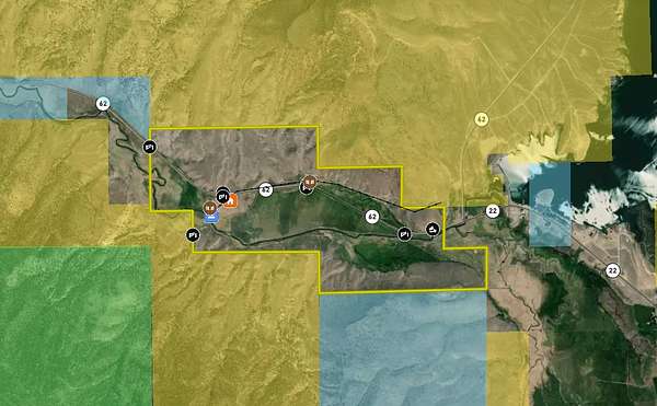This Piute County ranch presents a combination of agricultural infrastructure, senior water rights, river frontage, and wildlife habitat across a large contiguous acreage. The mix of productive river bottom fields, grazing land, water resources, and residential improvements provides a functional working ranch setting in a scenic area of southern Utah.