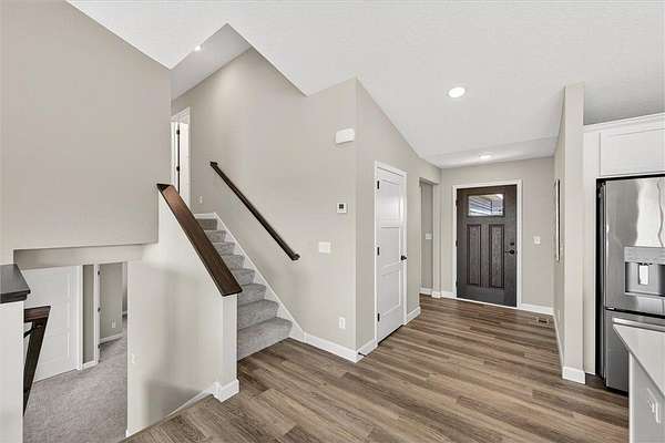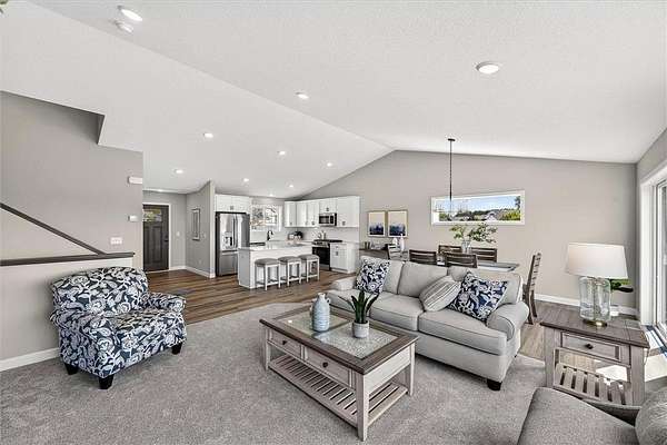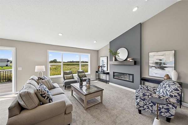 This is a To Be Built JP Brooks presents the Maplewood three level split home with finished lower level on a looking out with a finished basement on a walkout lot in the Desirable Fairway Greens North community in Isanti! Upgraded painted cabinets with crown molding, hardware, quartz countertops, SS appliances, & vaulted ceiling in kitchen, dining & living room area. Open living room with fireplace. Primary bedroom with a private bath, a tub and shower combo & double vanity. Finished lower level includes a spacious family room, 4th bed & 3/4 bath, & walkout lot. Pictures, photographs, colors, features, and sizes are for illustration purposes only and may vary from the home that is built. Desirable Fairway Greens North community with nearby Rum River BMX, Isanti Rodeo Dog Park and many more! This is a To Be Built