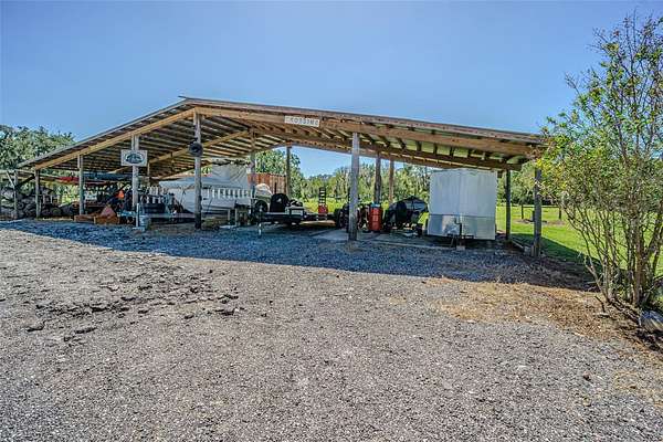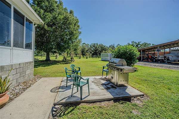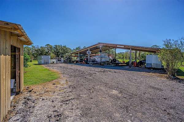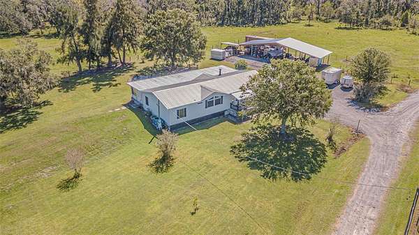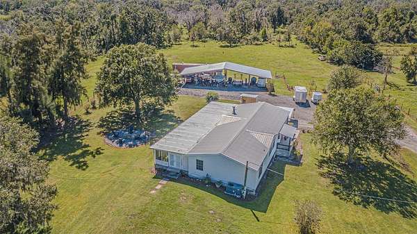 Ponder this--if the home's smaller than you want---use the attached back lanai to complete an addition to your living space--if you want a horse, the barn is ready---add a few stalls! Some of the fencing has already been done--and the driveway is packed down and stable. There are so many things that come into play when you want to move onto land in a more rural setting---the cost savings is huge to have these things already in place and grow your home and land as time and money permits!! Land alone is worth at least $60,000/ac or $300,000, well and septic and impact fees = $$30,000, Pole Barn similar = $25000, Manufactured home similar at least $150,000 (one sold for $275000 recently within 1 mile on a 1/4 of an acre for $275000) add the under pending, front porch and huge back enclosed porch with windows and metal roof over both-$75000 easy...just saying! You do the math and you'll discover the savings!