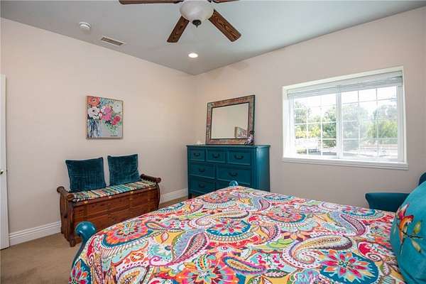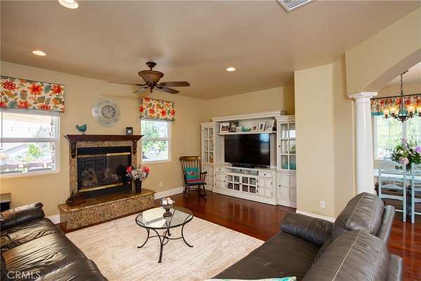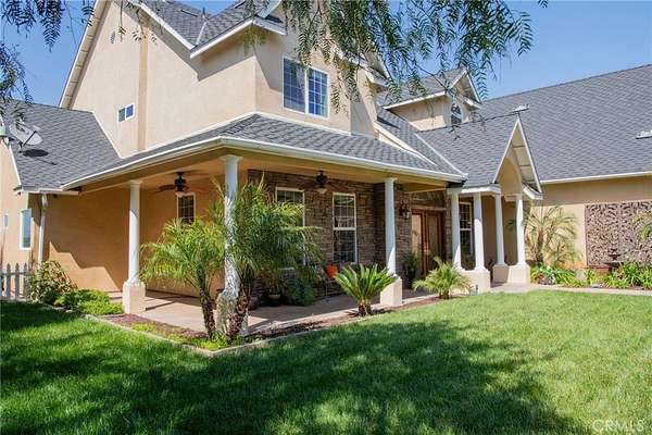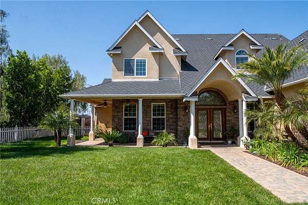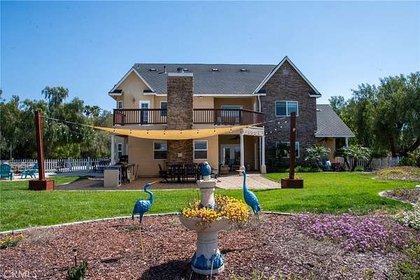 CUSTOM BUILT LAKE VIEW HOME is waiting for you. This 3,942 SF home offers 4 bedrooms 3 1/2 baths, a library/formal dining, office/bedroom and large game room on a fully useable 1.9 AC lot. As you enter the leaded glass front doors, 20 ft ceilings welcome you to the formal entry which is open to the living room where double French doors introduce the beautiful lake view. A library/dining room is to the left of the entry with a decorative wrought iron stairway to the right. The large kitchen is equipped with KitchenAid appliances including a built-in refrigerator, double convection oven and 6 burner stove. The oversized island provides seating for four and the breakfast area adds seating for at least six. All the lower cabinets and the pantry have roll-out shelving. A small walk-in pantry is around the corner. The kitchen is open to a sizeable family room with fireplace. A relaxing primary suite is located on the first floor along with the office/bedroom, laundry room and guest bath. The Primary suite has a lake view, access to two patios through French doors and the spa like bath has a jetted tub, individual vanities, frameless shower and two walk in closets. There is a junior suite with en-suite bathroom and walk-in closet upstairs. Both North facing upstairs bedrooms have beautiful lake views and French doors that lead to the large upstairs deck with fireplace where you can take in the peaceful vistas of the lake, mountains, hills and trees. The large bonus room has built in cabinets, mini fridge, plumbing for a sink and a 30 SF niche that can be used for crafting and more. The home is appointed with engineered hard wood, travertine and tile flooring, and high-end lighting fixtures in the entry and living area. There are ceiling fans in every bedroom, family room and game room and there are two new Quiet cool whole house fans to help keep the home cool and the electric bill down. The home has three AC units and WIFI connected thermostats. Out side you'll find multiple covered and uncovered patio areas, a BBQ island with sink, a firepit, landscaping front and back, automatic double swing entry gate at driveway, fully fenced perimeter of three rail white PVC fencing and additional fencing around landscaped areas. The covered patios have ceiling fans. This almost 2AC property is zoned for horses and some agriculture. Home has propane and septic system. Enjoy the peace and beauty of this area but have every convenience 10-15 minutes away.