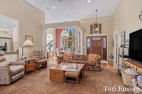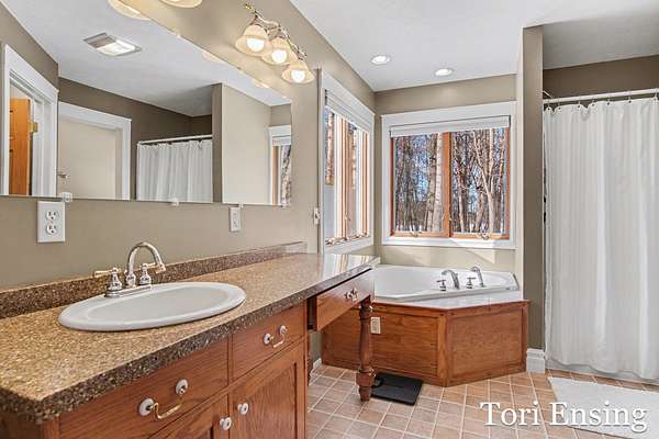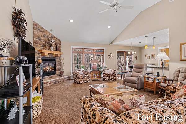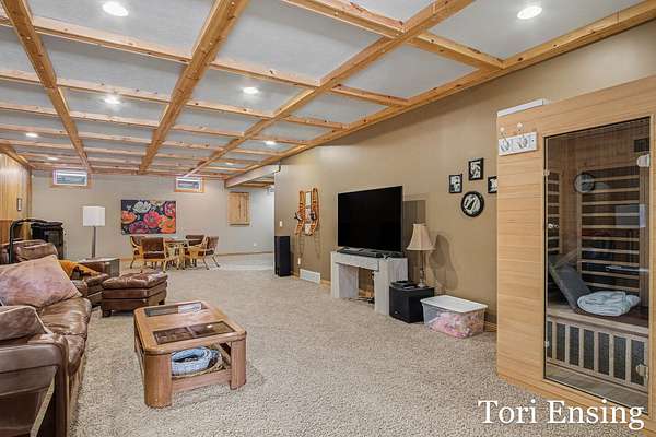 Custom built, beautiful executive ranch home on the west side of Greenville. Main floor offers 3 bedrooms and 2 full baths. Large primary suite with attached bath and walk-in closet. Kitchen with solid surface counter tops and stainless steel appliances to stay with the home. Eating area that looks out to the wooded back yard and deck. Formal dining room looks out to the front yard. Gas fireplace in the living room. Main floor laundry. Situated on over 2 wooded acres and 3300+ sq ft. Solid wood doors, floors, and cabinetry throughout the entire home. Full daylight basement features a huge second family room with rec space, a 4th bedroom, and another full bathroom. Additional features include deck, patio, fire-pit area, A/C central vac, under ground sprinkling, Anderson windows, professional landscaping, 2+ stall attached garage and additional 28x32 garage with 220. A must see! Open house Sunday, 2/15 1pm-3pm