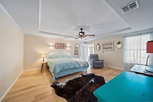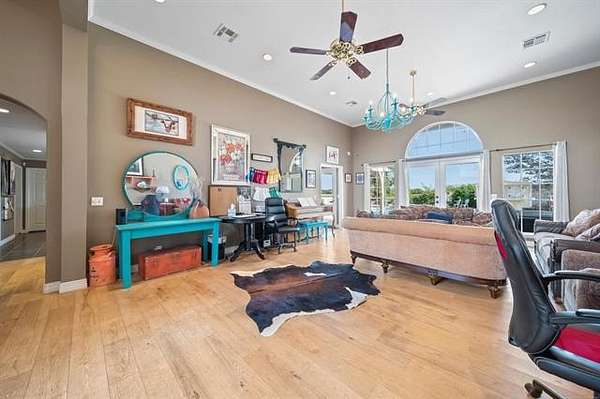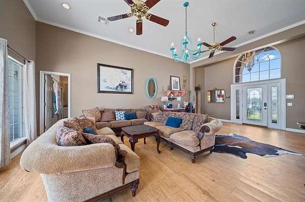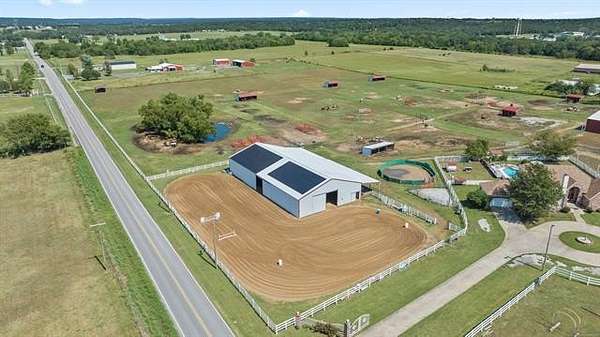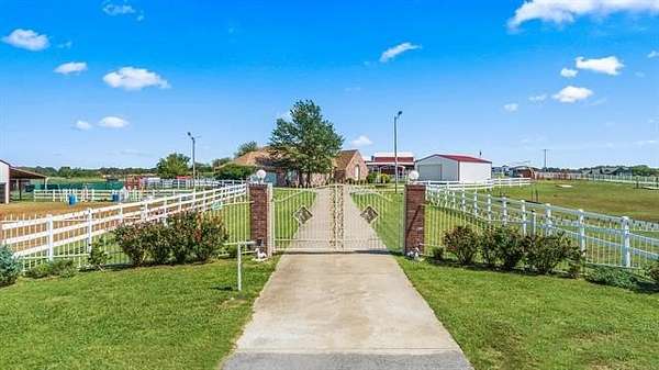 This would be a wonderful turnkey business opportunity or just enjoy this equine oasis all to yourself! The two-story estate home includes 4 bedrooms, 2.5 bathrooms, 2 living areas, and a sunroom. The home features crown molding, hardwoods and tile floors throughout. The master bedroom boasts a tray ceiling with double crown molding and the master bath contains two walk-in closets. The kitchen features a huge pantry and island, and a window that overlooks a small barnyard to enjoy chickens, goats, or sheep.