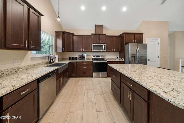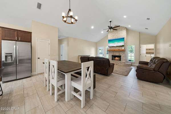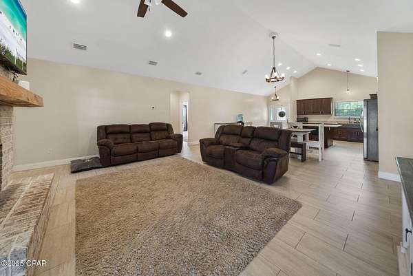 Welcome to your private slice of country paradise! Nestled on 3.29 serene acres, this charming 3-bedroom, 2-bathroom home offers the perfect blend of rustic character and modern comfort. Step inside to find a spacious open-concept living area with vaulted ceilings and a beautiful brick wood-burning fireplace that serves as a cozy centerpiece--perfect for chilly evenings and family gatherings.Designed with country charm in mind, the home features warm wood finishes, a functional layout, and plenty of natural light. The primary suite offers a peaceful retreat with an en-suite bath, while the additional bedrooms are generously sized.Outside, the possibilities are endless. A massive 32x60 barn with a 12x60 lean-to on one side and a 12x32 lean-to on the other offers ample space for equipment, hobbies, or animals. Chicken coops are already in place, and the land is well-suited for livestock--with plenty of room and potential to raise horses, goats, and more. Whether you're dreaming of a full homestead or simply want a peaceful country retreat, this property delivers.No HOA. Plenty of room for toys, animals, or simply enjoying the laid-back lifestyle. Schedule your private showing today and experience the freedom of country living!