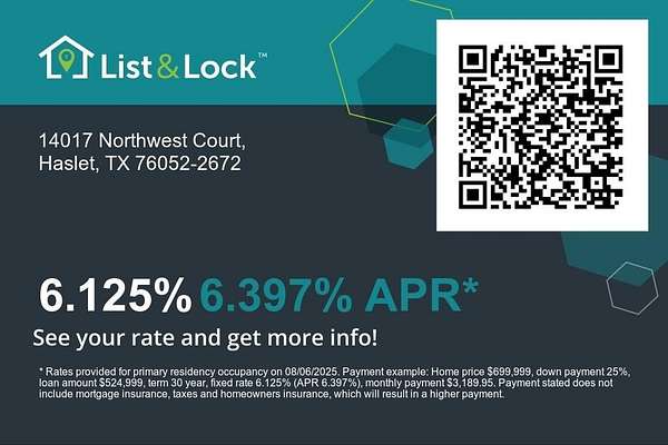 This house comes with a REDUCED RATE as low as 6.125% (APR 6.397%) as of 08-06-2025 through List & Lock(TM). This is a seller paid rate-buydown that reduces the buyer's interest rate and monthly payment. Terms apply, see disclosures for more information.