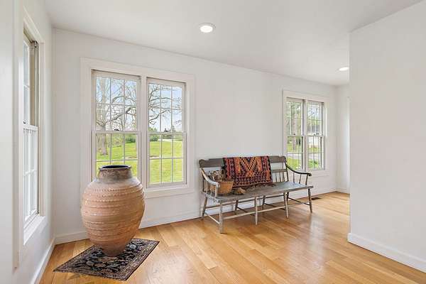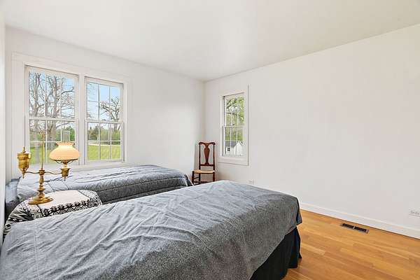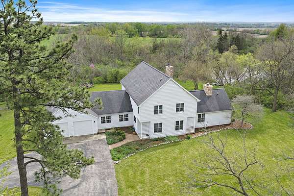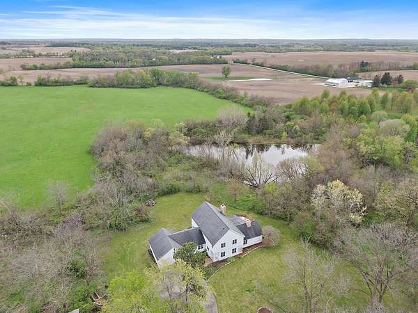 Situated on just under 20 acres in a peaceful, private setting, this one-of-a-kind Woodstock property offers the perfect blend of space, nature, and everyday comfort. The home features over 2,800 square feet of living space with an additional 1,100 square feet in the unfinished basement area, providing endless possibilities for future expansion or storage. Step inside to an open foyer that welcomes you into the home, where wide plank hardwood floors carry throughout the main living areas. The first-floor master suite is thoughtfully positioned and features its own gas fireplace, a large walk-in closet, and a spacious master bath complete with a separate shower and soaking tub. French doors open from the suite into the four-season room (original to the home), creating a seamless layout. The large eat-in kitchen offers white cabinetry, under cabinet & above cabinet lighting, and plenty of counter space, along with white appliances and abundant lighting. The kitchen flows into the family room/great room, which includes a second gas fireplace, dining space, additional cabinetry for storage, and two custom built-in benches. A French door leads directly to the backyard, making indoor-outdoor living easy and inviting. Just off the family room is an additional entry point to the four-season room provides with scenic views and direct access to the expansive brick paver patio. From here, take in the natural surroundings overlooking the private stocked pond, wooded areas, and open land that define this property's tranquil setting. Family room also features an oak staircase that leads to the second floor, where an open 27x12 loft area features custom built-ins and overlooks the main living space below (part of the loft space can be converted to additional bedroom space if needed). Two additional bedrooms and a full hallway bath complete the upper level.The first floor also includes a large laundry room with utility sink, cabinetry, and generous counter space. Nearby, a third full bathroom with a stand-up shower adds convenience. The hallway leads to a substantial heated workshop, which connects to the oversized 2.5-car garage. Above the garage, a full staircase leads to additional space with endless potential for storage & hobbies. Outdoors, the property continues to impress with its expansive acreage, two dedicated brick paver patios and let's not forget the massive barn full of rich history, silo and so much more! Properties like this are rarely available. A truly special opportunity to own a private retreat with room to grow, both inside and out.