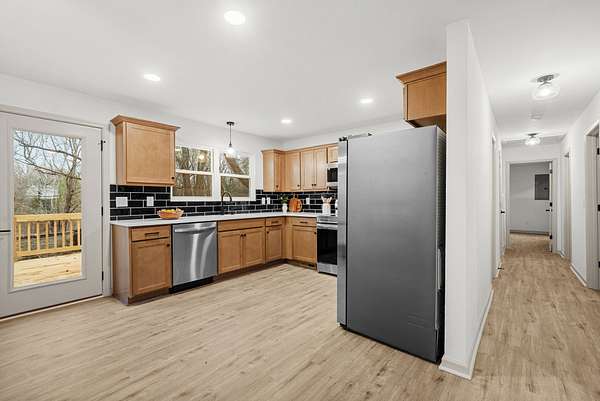 Completely renovated and move-in ready, this stunning home offers modern style and peaceful living on 3 gorgeous acres! Inside, large windows provide ample natural light throughout! The home flows seamlessly through the large living room to the open concept dining/kitchen area. In the kitchen, you’ll find beautiful quartz countertops, fashionable cabinetry, modern finishes, and a generously sized pantry—perfect for storage and organization. The primary bedroom has abundant space and includes a oversized closet with custom shelving and a bathroom with a sleek stand-up tile shower and a double vanity sink! Major updates include a brand new roof, garage doors, deck, appliances, and windows. Enjoy the perfect balance of privacy and convenience, located just minutes from I-24 and ideally situated between Clarksville and Nashville. This beautifully updated home offers space, comfort, and easy access to everything you need—don’t miss this exceptional opportunity!