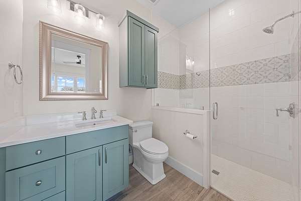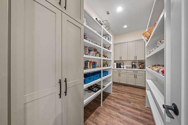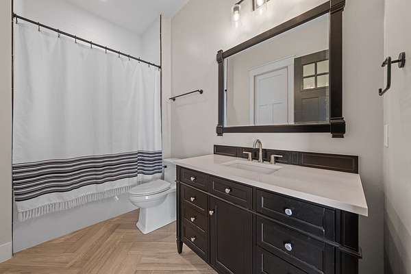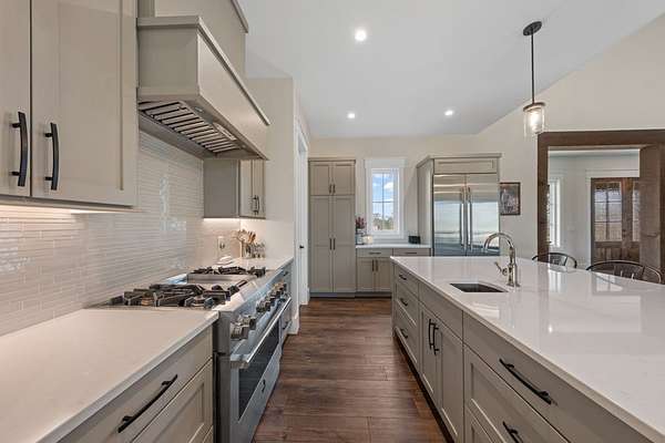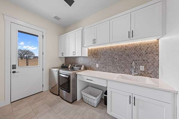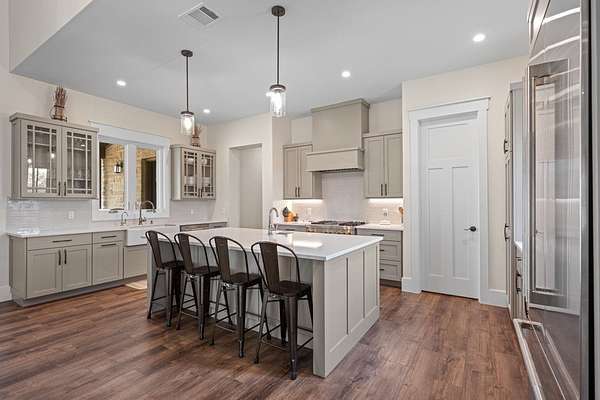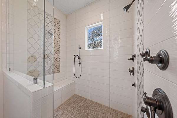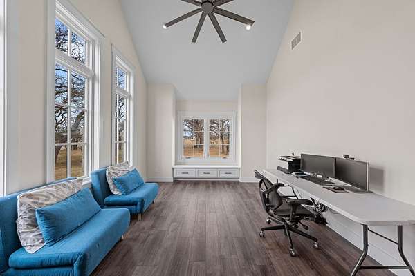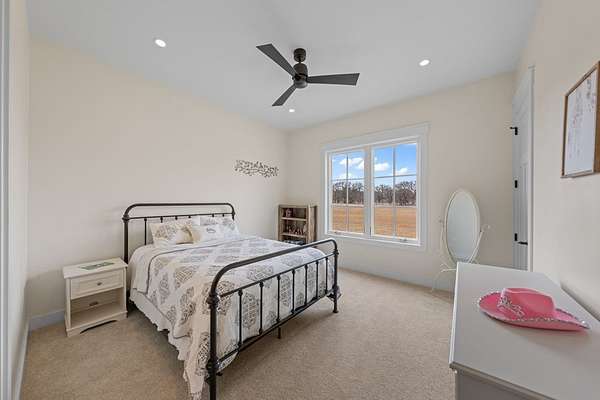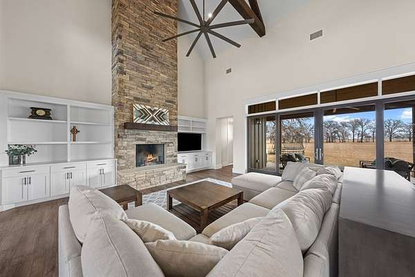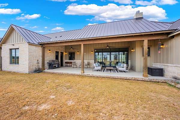 Custom Hill Country residence set on 8.38 acres with long-range views, open pastureland, and mature oak trees. EXTERIOR: Featuring a stone and board & batten exterior with standing seam metal roof, the home presents a clean, timeless architectural profile. The property is positioned for privacy and favorable orientation, offering wide views, usable land, and a strong connection to the surrounding landscape with convenient access. INTERIOR: Single-story layout with clear separation of living and private spaces. The open living and dining area features vaulted ceilings, exposed wood beams, and large windows that provide abundant natural light and frame Hill Country views. A full wall of sliding glass doors and fixed pane windows opens directly from the living room onto the covered back patio, creating seamless indoor/outdoor flow and expanding the usable living space. Neutral finishes, clean lines, and thoughtful proportions provide a flexible backdrop for a range of furnishing styles. A separate half bath serves guests and common areas. KITCHEN: Positioned for both daily use and entertaining, the kitchen offers generous workspace, ample cabinetry, and direct connection to the dining and living areas. A walk-in pantry and scullery provide additional storage, prep space, and functionality, keeping the main kitchen open and efficient. PRIMARY SUITE: Privately located away from secondary bedrooms, the primary suite features vaulted ceilings, large windows with peaceful views, and a spacious bath with dual vanities, soaking tub, walk-in shower, and generous storage. The oversized walk-in closets are thoughtfully designed with built-ins and room for long-term organization. GUEST SUITES: Three additional bedrooms are each equipped with their own en-suite bathrooms, offering privacy and functionality for family, guests, or multi-generational living. Bedroom placement allows for separation and quiet while maintaining convenient access to the main living areas. OUTDOOR LIVING: A large covered back porch spans the rear of the home and is accessed directly from the living area through the sliding glass doors, creating an ideal space for outdoor dining, relaxing, or entertaining. The surrounding acreage offers room for recreation, gardening, additional improvements, or simply enjoying the open space and native landscape. LOCATION: Located in Fredericksburg's ETJ, the property offers proximity to town amenities without city taxes while maintaining the space, privacy, and setting expected of an acreage property. ADDITIONAL ACREAGE AVAILABLE: Adjoining 4.85 acres (Lot 26) also available. MLS# 100500