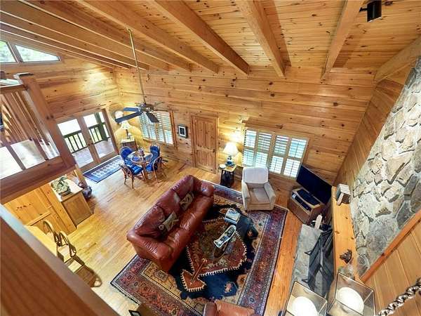 OUT OF PROBATE & READY TO SELL - Majestic Mountain retreat spread over 63+ acres featuring 4 acres of rolling pastures, mountain views, a meandering stream, and cabin nestled in the valley overlooking a 2-acre pond. This property features several building sites for a potential family compound, development or remain a private retreat. Secluded property, road frontage and gated access on two roads with county water and underground utilities. (Rare for this size/type of property.) Only 15 minutes from Downtown Jasper and 20 minutes from Canton. The custom-built cabin features an oversized front porch, screened side porch and a full height crawl space for tool storage. Beautiful 1"x10" interior white pine tongue and groove walls and flooring throughout both levels. Two-story vaulted family room/dining room with stacked stone fireplace, guest bedroom and bathroom on main level. Kitchen features a pantry, island, eating area, and opens to the screened porch. Relax in the open Master Suite upstairs showcasing a full hot tub, shower, and adjacent sunroom. This is Rustic Luxury at its best! Enjoy the abundance of foliage, wildlife, trails, fishing or just soaking in the surrounding serene views from the porches - you will find yourself never wanting to leave! Estate Sale - updated survey to be provided. NEW Buck stove November 2023. Appointment Only with proof of funds or approved financing.