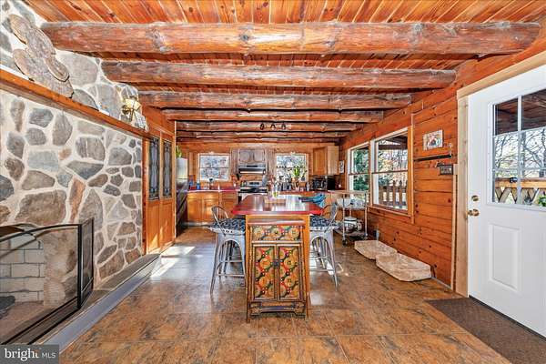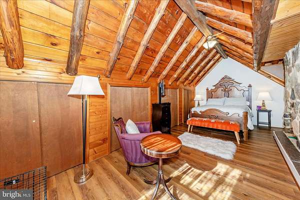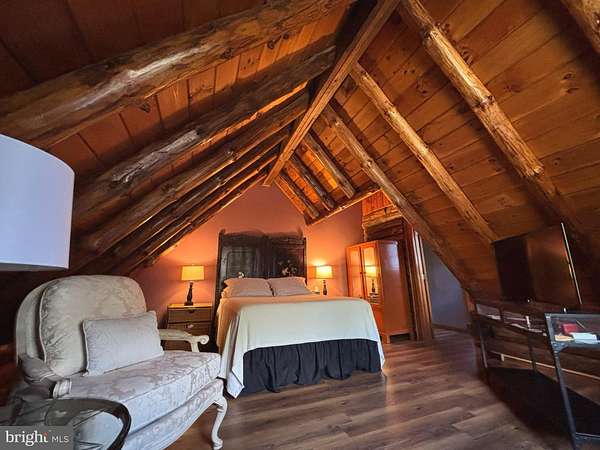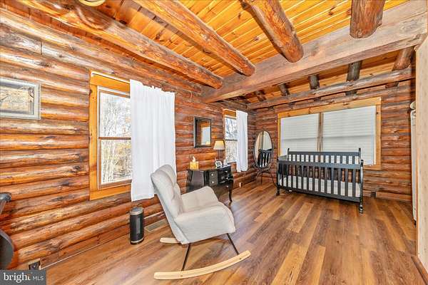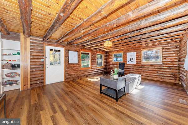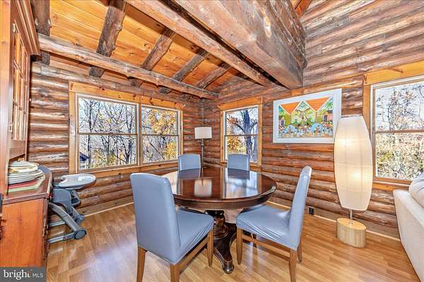Sprawling Log home with unique character and distinctive detail on 3 acres of natural beauty and privacy, with easy access to 340, Frederick and Loudoun County. 4 Bedrooms and 3 Full Baths - detached garage connected by walkway has flex space above huge 6-bay garage/workspace - plenty of room for the hobbyist - space for toys and all the gear. Main floor bedroom & updated tile bath can be au pair or in-law suite - enjoy the seasons or mountain view from a porch or balcony on each side of home. Updates include new roofs, gutters, HVAC, piping, exterior doors, fresh paint, and a recently finished studio that could also serve as a home office w/loft, craft room w/natural light or teen hangout - use your imagination! Newer LVP flooring covers 3/4 of home, newer dishwasher & stainless refrigerator. Home is ready for its next chapter with inspired owners! Proximity to National Parks, river activities or Appalachian trail, historic battlefields or wineries; convenient commute to DC/VA or Marc train. Selling As-Is, quick settlement possible.