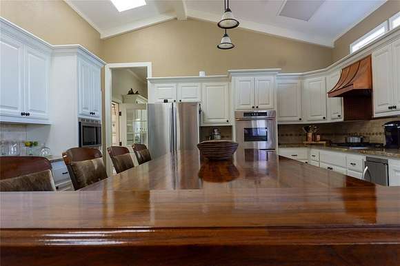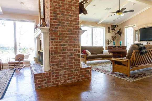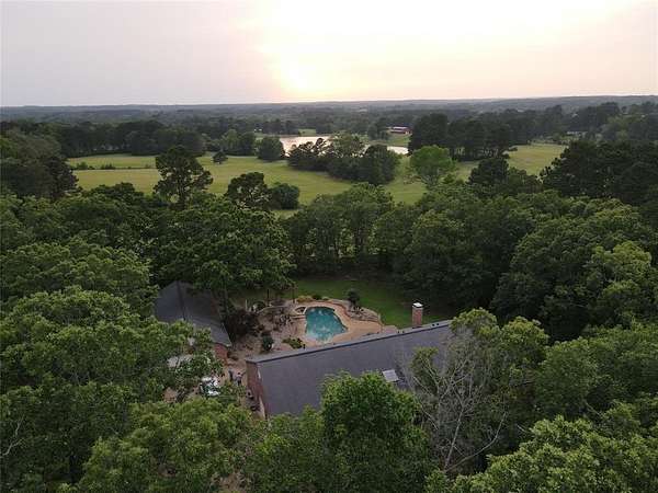 Location! Location! Location! Land developers, Event Venue, Your own Personal Vineyard business, Home and Business Park, Endless Possibilities! Remarkable East Texas Country Lifestyle Property is nestled in the middle of 36 wooded acres, perfect for hunting and great for 4-wheeling. Custom 5 bed, 3.5 bath home with stained concrete floors and custom South Texas Mesquite countertops. Gorgeous kitchen features commercial grade grill and gas cooktop with copper vents, icemaker, double oven, and walk in pantry with second refrigerator. Large windows and skylights throughout the home provide beautiful natural light. Primary bedroom enjoys a steam shower and expansive sitting area and private office alcove. This home is perfect for entertaining with an open living room as well as an outdoor living area with grill and diving pool and spa. Fully insulated, temperature controlled, 60 x 24 garage has parking for two more cars and includes a full mother-in-law suite. The spacious, 10,000 sq ft barn offers ample storage & workshop space and would make great event venue. Zoned Landscape irrigation system and established vineyard around house and barbed wire fencing. All information to be verified by buyer.