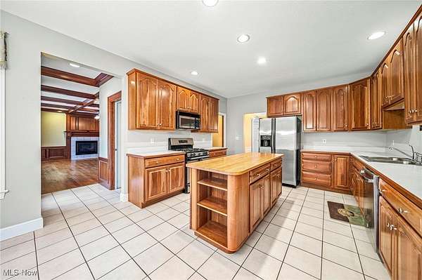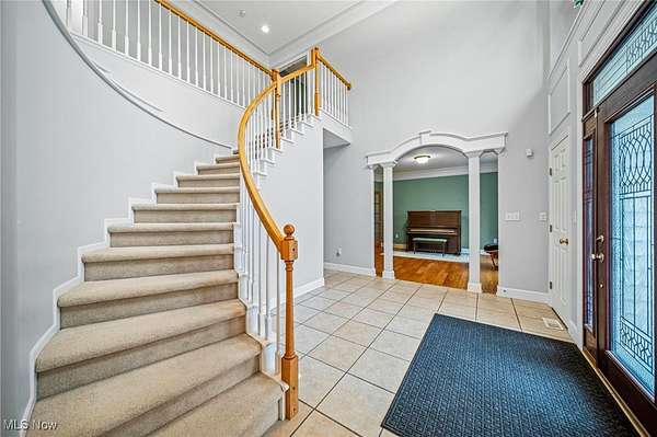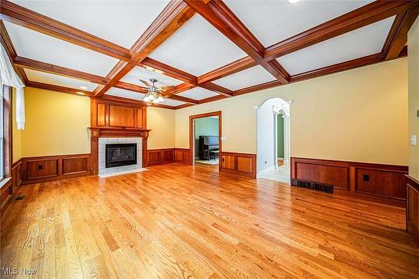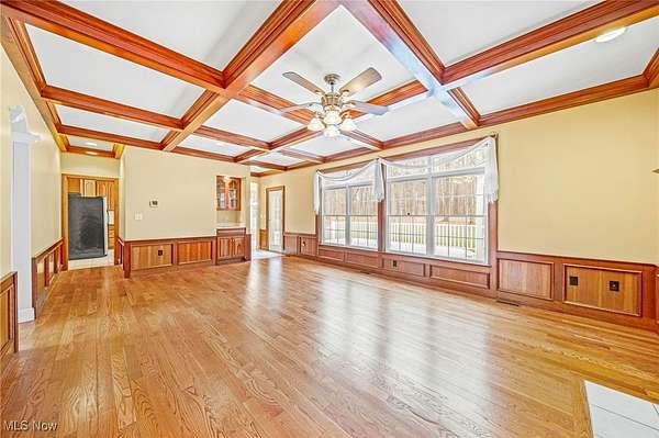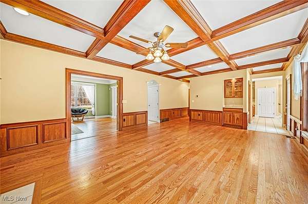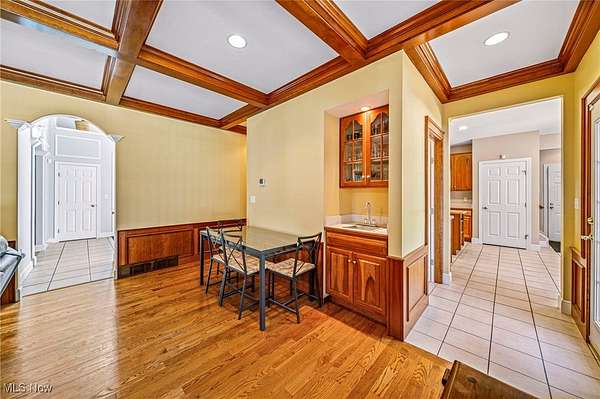 - Coffered Ceilings, Crown Molding, Entrance Foyer, High Ceilings, Kitchen Island, Natural Woodwork, Pantry