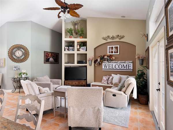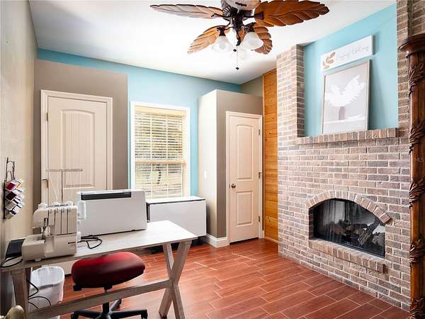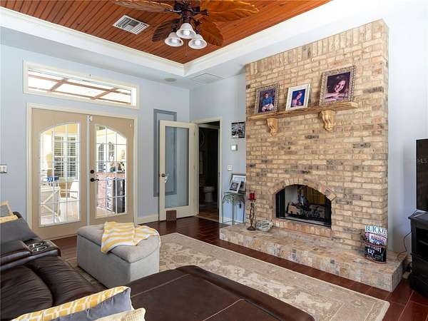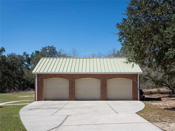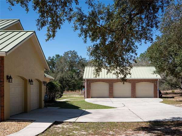 Prime HUNTING property with 11.24 acres, backing up to the Ocklawaha Preserve entrance just minutes away. All the mechanical items are upgraded, 2 A/C units - both have been updated, 2019 and 2022. The Lifetime Metal roof is 24 gauge standing seam. Hot water heater was replaced in 2025. The home is in a small, private subdivision surrounded by vacant land, offering quiet and seclusion without traffic noise. While most homes in the Community are around a small lake, this property is set apart and permits up to three horses. The current owner’s custom built this Southern Colonial home, featuring a unique layout with open dormers at the front. The open kitchen and living area have plenty of space for cooking and entertaining with family. Pantry space flanks the built-in fridge, and the 4’ x 9’ island seats up to 10 with storage below. The kitchen features newer KitchenAid stainless steel appliances, including a built-in oven and microwave, as well as a five-burner propane gas cooktop. A custom-crafted range hood made of stainless steel and copper adds both functionality and style. The laundry and mudroom entrance, accessible from the garage and located adjacent to the kitchen, features a pocket door with decorative glass that provides both natural light and privacy. The front porch is distinguished by substantial 18-inch fiberglass columns, which enhance the architectural elegance of the structure. Please take a moment to relax and unwind on the porch swing or in your preferred rocking chair. The home features ceramic tile flooring, with wood-look plank tiles in the bedrooms and family room. Numerous transom windows add light and a sense of openness. Window coverings include plantation shutters and blinds. Relax and unwind as you sit by the screened pool and soak up the Florida sunshine. Brick summer kitchen in covered porch area. Detached 3-car garage provides workshop and storage space; residence also features an attached 2-car garage. Local restaurants are minutes away, including Gator Joes, Eaton's Beach and Big Bob's Italian. This is the historical town of Ma Barker - local legend! Call for a showing today.