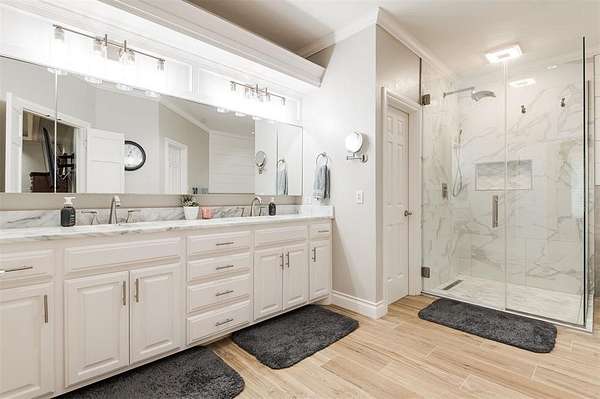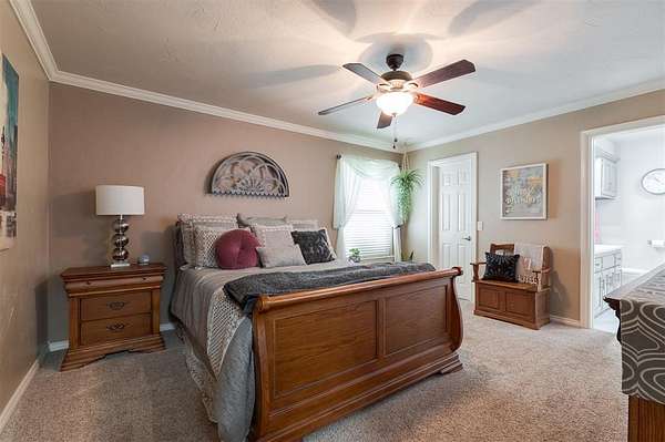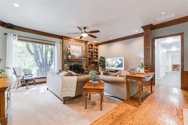 Some homes are built. Others are cultivated. Surrounded by hundreds of mature trees on 3.7 private acres, this 4,598 SqFt Estate is the property you've been describing to yourself for years. Five bedrooms, a wood-encased study, a bonus room, 4.5 beautifully updated baths, and the stunning pool.. Inside, every detail has been meticulously maintained and thoughtfully upgraded. The kitchen and bathrooms were completely reimagined in '21 with top-of-the-line KitchenAid appliances, an induction cooktop, double ovens, and finishes worthy of a feature spread. Two beverage coolers - one in the kitchen, one in the den - tell you exactly what kind of entertaining happens here. The primary suite is its own retreat. Heated floors in the bath, Bluetooth music streaming through the shower, and the kind of quiet that only acreage can provide. Walk-in closets and generous built-in storage throughout complete the picture. Outside, the pool is the centerpiece of a private resort. Ranging from 4 to 7 feet deep, it features built-in floor cleaning, ultraviolet purification for low-chlorine swimming, a waterfall, and LED lighting above for late-night swims. A 24-zone irrigation system fed by well water keeps every inch of this estate's lush grounds immaculate. The infrastructure matches the elegance. A new CertainTeed Grand Manor Class 4 Impact Resistant roof (3/25/24) - leads a long list of major upgrades: two new gas water heaters (8/25), new water softener (8/24), updated gas furnaces, new well pump, and a smart home system throughout. The 3-car garage includes built-ins, attic storage, and a 220V/50-amp EV charging outlet. Storm shelter, whole-house alarm with fire sensors, gas log fireplace, and an ice machine round out the list of "of course it has that" features. This estate isn't just a home - it's an investment in how you want to live.