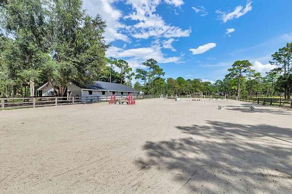 All Sizes Approx. This One Will Check All The Right Boxes! Need A Six Car Garage? Need A Two Bedroom Guest Home? Need A Eight Stall Barn? Need A Resort Style Pool With 3,000 Sq Ft Of Patio? You Can Have It All With This Country Estate! Main Home Offers Three Bedrooms Plus A Den/Office, 20x18 Oversized Primary Bedroom, Primary Bath Has Been Updated With Large Open Shower And Soaking Tub! Kitchen Has Been Updated. Family Room Has Vaulted Beamed Ceiling And A Cozy Fireplace! The Guest Home is Connected To The Main Home By A Covered Breeze Way, Two Large Bedrooms, One Large Bathroom, This Area Would Be A Great Home Office Area! Oversized Six Car Garage With 18 Ft Doors And 20+Ft Open Rafter Ceiling, Workshop Area, Perfect For The Car Enthusiasts or Hobbyist! Eight Stall Center Isle Barn, A/C Feed Room And Tack Room, Oversized Wash Rack, Fly System. Hay Room, Seven Turnout Areas, Dressage/Jumper Arena, Roof On Barn Was Put On In 2022, Plenty Of Room For Horse Trailers, Property Is Completely Fenced And Cross Fenced! 20X50 Custom Designed Screened Pool With Rock Waterfall, Cascading Marble Spillover, Paver Patio Is Over 3000 sq ft With A Beautiful Covered Outdoor Eating Area! Some Of The Many Extras That This Home Offers, All Done In Hardie Board Siding! Cement Paved Driveway, Auto Iron Gate Entry, Roof Was Replaced In 2022, Home Has Accordion Shutters, This One Has It All!! Come See This One Today!!