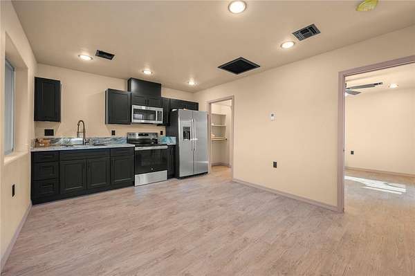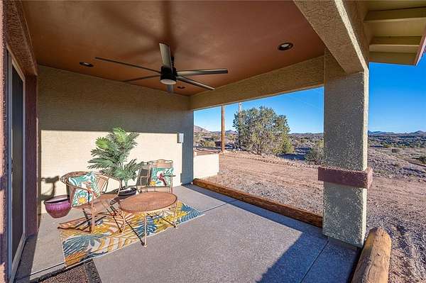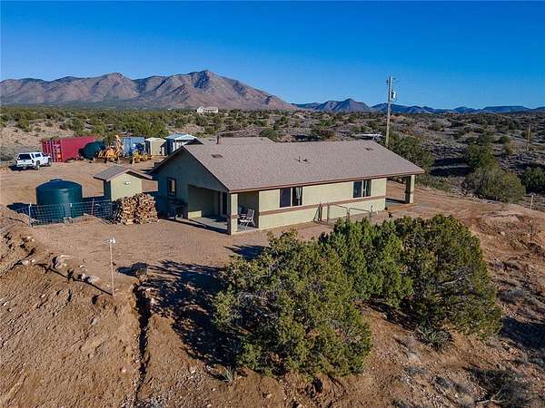 Welcome to an unbelievable opportunity on 40 acres of peaceful, wide-open land. This property sits on a hill with views that stretch for miles, surrounded by Juniper trees and some of the darkest, clearest night skies you will experience. Access is easy, and the property is just a short drive off Hackberry Road. Every detail, both for now and the future, has been carefully planned. The main home was completed in 2024 and offers 1,256 square feet of thoughtful design. The kitchen stands out with a large pantry, soft-close cabinetry, under-cabinet lighting, and granite countertops. The laundry area includes a utility sink and a circulating pump added to the water heater for instant hot water. The primary bedroom feels like a retreat with large windows that frame the sweeping views. Sliding glass doors lead to the covered patio, where you can enjoy quiet mornings and peaceful evenings. A 220 outlet is in place for a future spa. The new, never-lived-in Casita features 527 square feet with 1 bedroom, 1 bathroom, and an attached garage with climate-controlled storage at the back. Designed with mobility in mind, it also reflects the same beautiful build quality as the main home. It includes 2 covered patios, a kitchen with dark cabinetry, granite countertops, and a large bathroom with a walk-in shower. Both the home and casita have spray foam insulation to help keep utility bills lower. The private well produces about 100 gallons per minute and includes a 1 1/2 horsepower pump, 2,500 gallons of water storage, a fully insulated pump house, and a whole-house filtration system. There are also two large, fully fenced animal containment areas that give your dogs a great place to run. The property was designed to take full advantage of the scenery and plan ahead for future needs. Below the home is a rough-graded pad ready for a future shop or horse setup. There is an RV clean out with water and electric, wiring in place for Starlink, and underground electrical conduit already run and marked for upcoming projects. The panel has space for future additions. If you just cannot get enough of the outdoors, there is even a seasonal toilet that lets you enjoy the fresh air and starry skies. If you are looking for the ideal homestead in a higher elevation with complete privacy and panoramic views, this one is hard to beat. This is a property you truly need to see to appreciate.