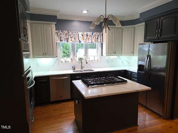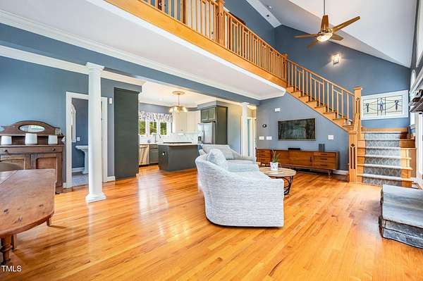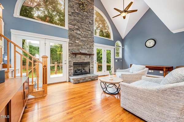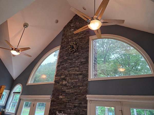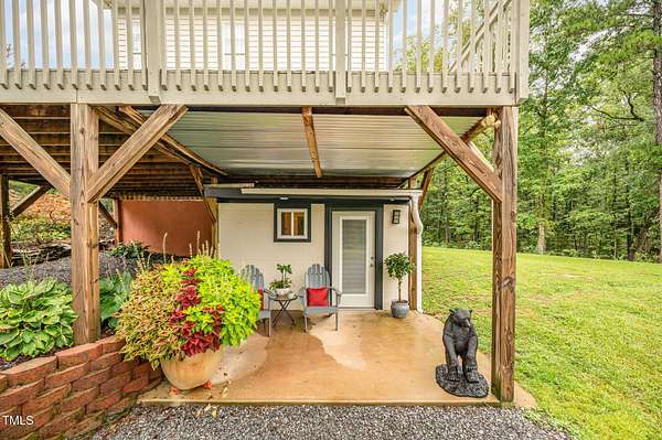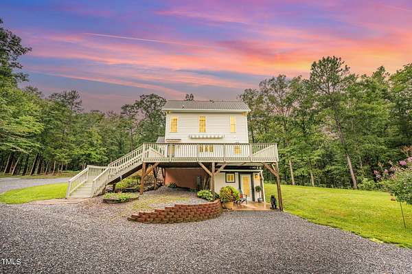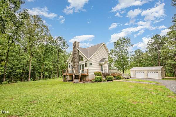 Enjoy the peace of rural living while still being within convenient reach of nearby towns and amenities. Welcome to your own private retreat nestled on 6.9 serene acres. You come to see and feel how very special this property is as you pass through the gated entrance and drive along the tree-lined driveway leading you to this one of a kind home in the Lakewood Falls community. It is a perfect blend of privacy, comfort, and nature. with spacious living, surrounded by mature trees, open skies, and room to breathe. Inside, you'll find a home full of character and thoughtful extras and features throughout like crown molding hardwood & tile flooring, stained glass windows in several spots. Open main floor living area with cathedral ceilings, stacked stone fireplace open to the great kitchen with center island with counter seating space. Massive back deck off of this level with beautiful surrounding views of the nicely manicured yard. The upper level houses the primary suite with glass double doors that overlook the lower space skirted with arching windows and French doors. This house is bright with so much natural light. The finished basement offers a large bedroom, living room, full bath, with separate entrance from patio. This house is designed for both relaxation and entertaining inside and out. Outdoors you will find a huge 2 car detached garage with extra room for tools or storage. A 20x10 storage building and a charming rustic barn with reclaimed wood with lean to for lawn equipment or yard tool area. These buildings offer endless possibilities for an office/work space, art studio, man cave or she shed. Lots of area to get creative. If gardening is your thing then you will love the 8x16 greenhouse with electrical and water. Gather with family and friends around the Firepit. This property really is a stunning place, you need to see to appreciate all it has to offer! Don't miss this rare opportunity to own a distinctive slice of North Carolina countryside. Adjacent 5.34 acre lot available for purchase.