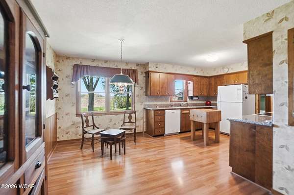 Original owner brick ranch custom built in 1972 by a well known local builder. This 3 bedroom, 2 full bath home offers 1,488 sq ft with a finished basement and quality features throughout, including real wood cabinetry, granite kitchen countertops, and Pergo flooring. Kitchen appliances stay, with stove and microwave new in 2025. The finished basement includes a workshop, adding great space for projects, storage, or hobbies. Situated on 1 acre with an additional 1 acre parcel included, complete with its own septic system, this property also features a 22' x 32' outbuilding for even more versatility. Enjoy a peaceful country setting with Owl Creek flowing behind the property, beautiful sunset views, and the convenience of being just minutes from town. Rare opportunity with extra parcel and room to grow.
