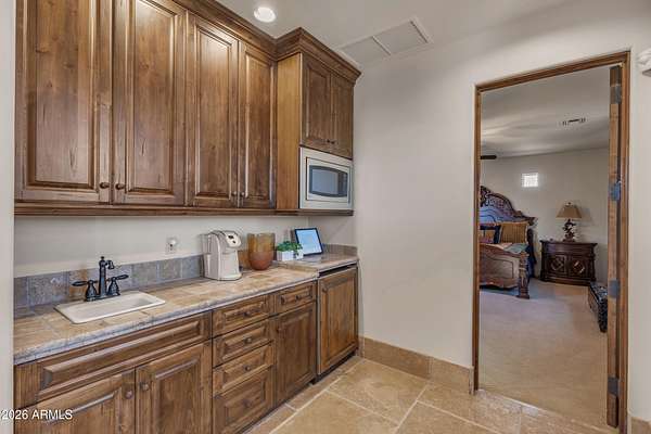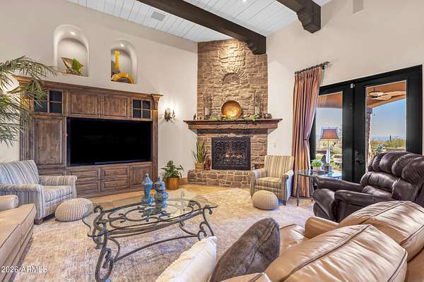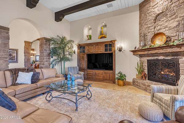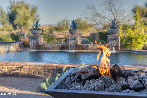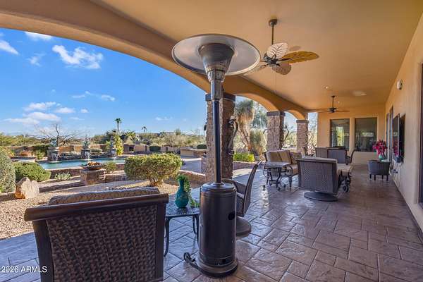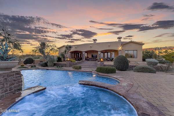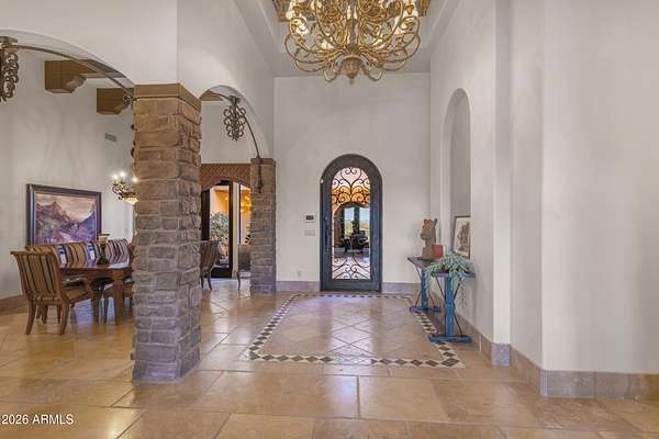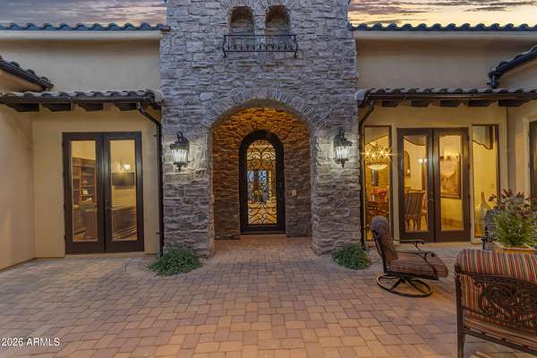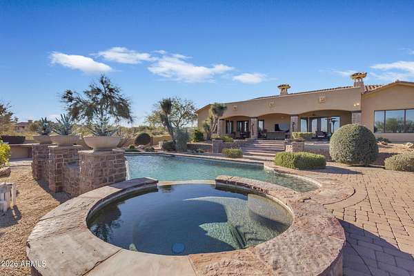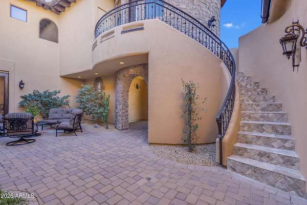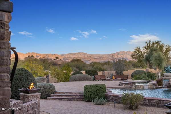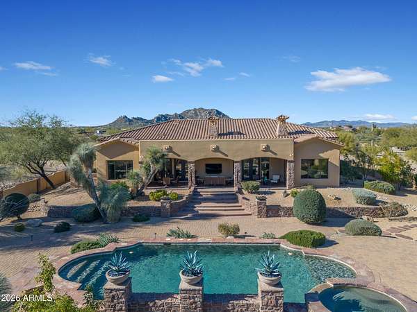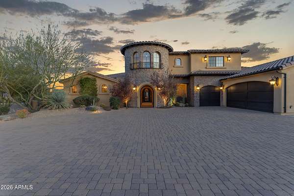 FANTASTIC TUSCAN LUXURY VILLA (TRUE RUSTIC EUROPEAN ELEGANCE) WITH ATTACHED GUEST SUITE. Private gated entry driveway leads you to this incredible home. Enter through an enclosed courtyard and discover a formal living and dining room. Chef's kitchen, great room, billiards room, large wet bar with ample storage and built in cooled beverage storage. 680 bottle wine cellar and private office. This home is showcased throughout with features including Tall Turets with brick ceilings, custom wood beams, corbel ceilings, hardwood floors. The rear yard is your own upscale resort oasis, featuring pool and spa, fireplace, fire pit with seating, bbq area, putting green, extensive landscaping and an unparalleled soothing views of the Four Peaks Mountains from and expansive covered patio. There are 4 HVAC air handlers, recently maintained by Parker and Sons, 2 new Tankless Water Heaters, with and updated landscape, water drainage areas and new plantings. Granite Mountain Ranch is the only gated equestrian community in Scottsdale, where each homeowner can have up to 4 horses per lot. It has 100 home sites spread across 315 acres. 15 acres of equestrian facilities including 2 large arenas and 2 round pens, paved and light streets, underground utilities and a private water resource. It is adjacent to the McDowell Sonoran Preserve. You'll have easy access to riding trails, hiking, biking and golf courses.